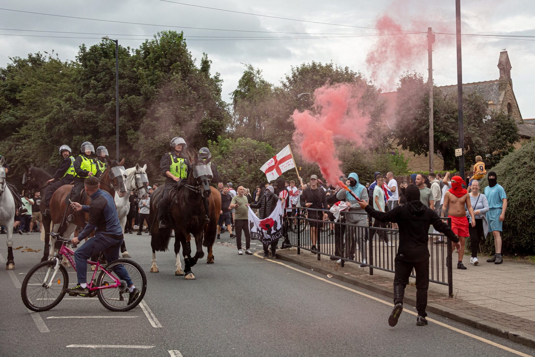 Στο Λίβερπουλ, οι διαδηλωτές εκτόξευσαν καρέκλες, τούβλα και άλλα αντικείμενα εναντίον των δυνάμεων της τάξης, ενώ βρετανικά μέσα ανέφεραν ταραχές στο Μάντσεστερ και στο Μπέλφαστ, της Βόρειας Ιρλανδίας.