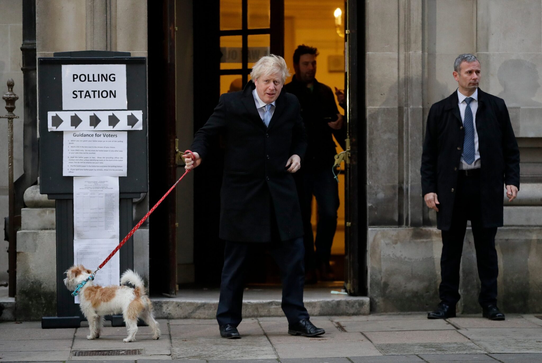 Ο Μπόρις Τζόνσον με το σκυλάκι του, ελπίζουν να γίνουν μόνιμοι κάτοικοι στο 10 της Dowing Street για την επόμενη 4ετία. Dylan Martinez / Reuters