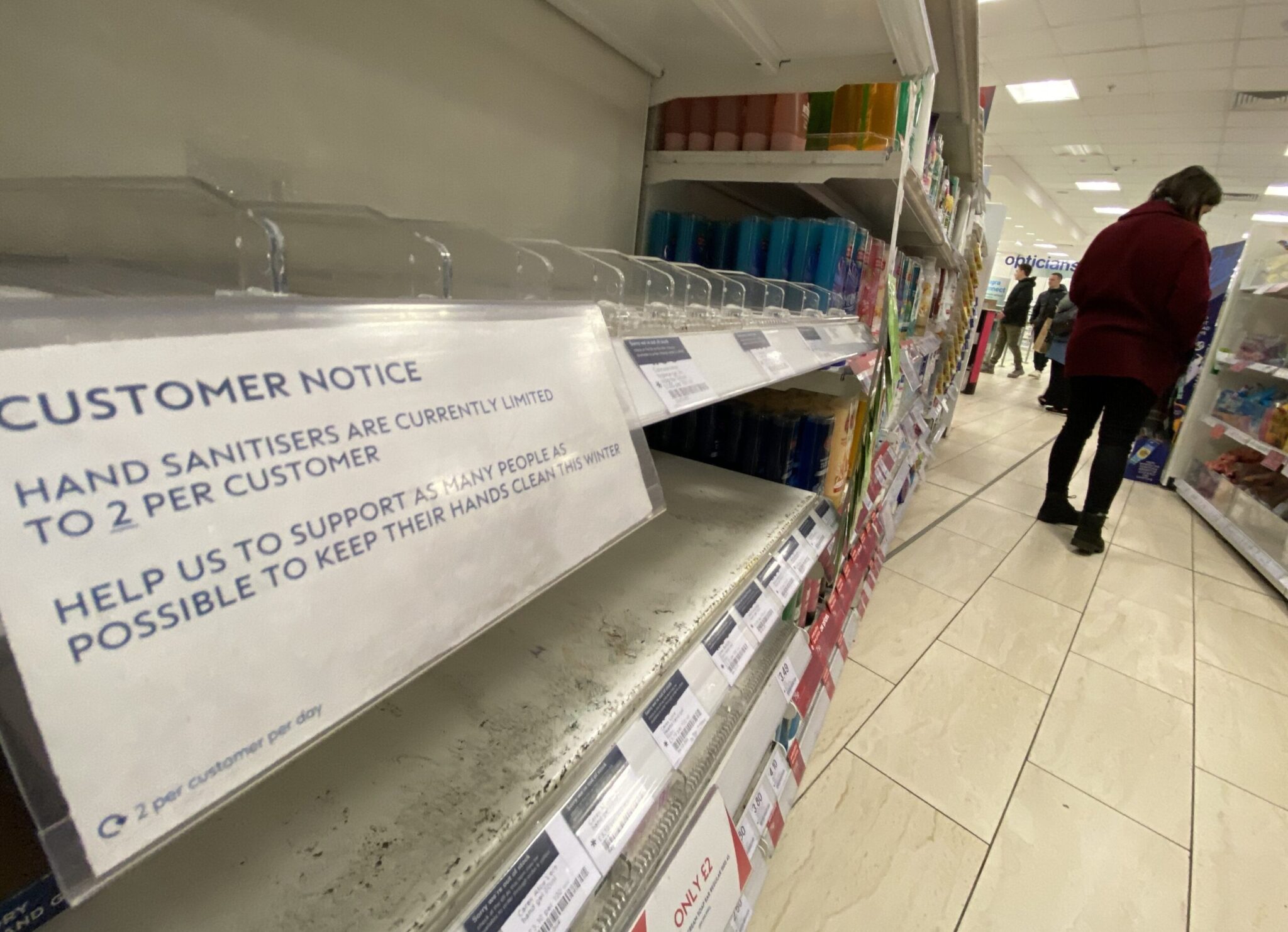 Οσο για την Boots, την μεγαλύτερη αλυσίδα φαρμακείων της χώρας, ξεκίνησαν οι περιορισμοί στα κεντρικά καταστήματα, στις αγορές αντισιπτικών για τα χέρια, στα δύο τεμάχια ανά πελάτη.