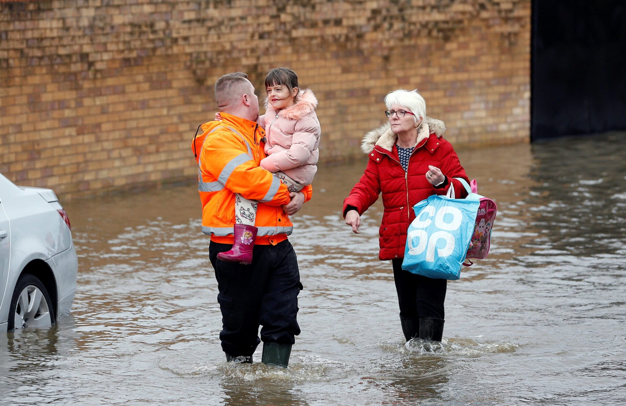 Δεκάδες άνθρωποι παγιδεύτηκαν σε ένα εμπορικό κέντρο στην πόλη Σέφιλντ τη νύχτα, αφού εγκλωβίστηκαν από τους χείμαρρους λάσπης και άλλοι 100 διασώθηκαν από ένα κοντινό εμπορικό κέντρο από πυροσβέστες, που κατάφεραν να τους προσεγγίσουν με φουσκωτά σκάφη.