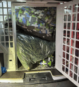 «Πρέπει να ομολογήσουμε ότι μας τελείωσαν οι πολύ μεγάλες σακούλες τεκμηρίων και χρειάστηκε να δανειστούμε τις παπλωματοθήκες των υπόπτων για να περισυλλέξουμε και τα 225 φυτά», ανέφεραν οι αρχές με χιούμορ.