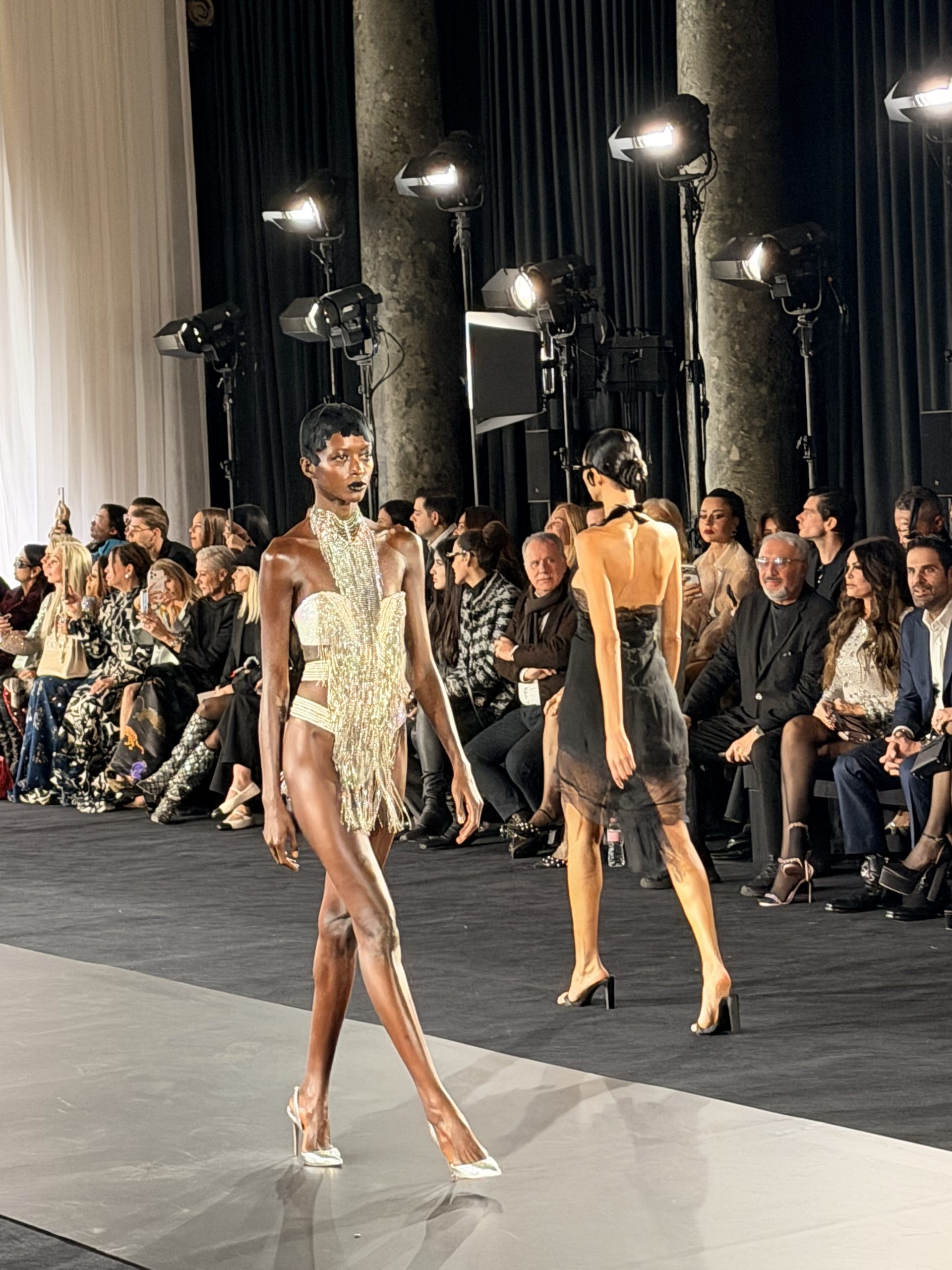 Η κινηματογραφική αίγλη βρίσκεται στην καρδιά αυτής της συλλογής, θεμελιωμένη στο παραδοσιακό couture savoir-faire. Από το ατελιέ του Οίκου της Σίλιας Κριθαριώτη στην Αθήνα μέχρι το Παρίσι και το Χόλιγουντ, τα φτερά, η λάμψη και η φαντασία μεταφράζονται σε μια σύγχρονη γλώσσα απόλυτης φινέτσας. Μαύρες βελούδινες κουρτίνες πλαισιώνουν την αίθουσα Pavillon Cambon, ενώ το catwalk είναι τυλιγμένο με ατελείωτα μέτρα λευκού σιφόν, δημιουργώντας ένα μοναδικό θέαμα. Τα μοντέλα κατεβαίνουν τα σκαλιά, φέροντας τον μεθυστικό αέρα του Old Hollywood στην καρδιά του Παρισιού.