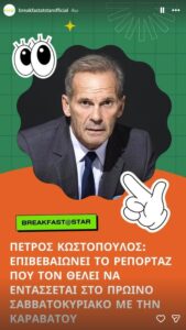 Ενοχλημένος ο Πέτρος Κωστόπουλος από τα σχόλια στην πρωινή εκπομπή του Star