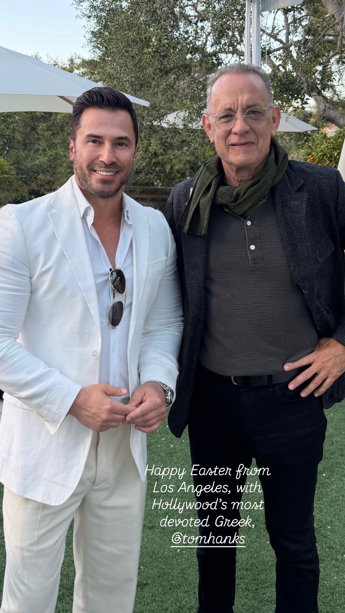 Η καθιερωμένη συνάντηση των «ισχυρών Ελλήνων» του Χόλιγουντ έγινε την Κυριακή του Πάσχα στην έπαυλη του προέδρου της Paramount Pictures, Τζιμ Γιαννόπουλος Λος Άντζελες. Ανάμεσά τους ο Τομ Χανκς-απέκτησε ελληνικό διαβατήριο το 2019- με τη σύζυγό του Ρίτα Γουίλσον, η Νία Βαρδάλος με τον σύντροφό της, Σπύρο Κατσαγάνη, ο Τζον Στάμος, ο Μπίλι Ζέιν και ο Μάικλ Τσίκλις.