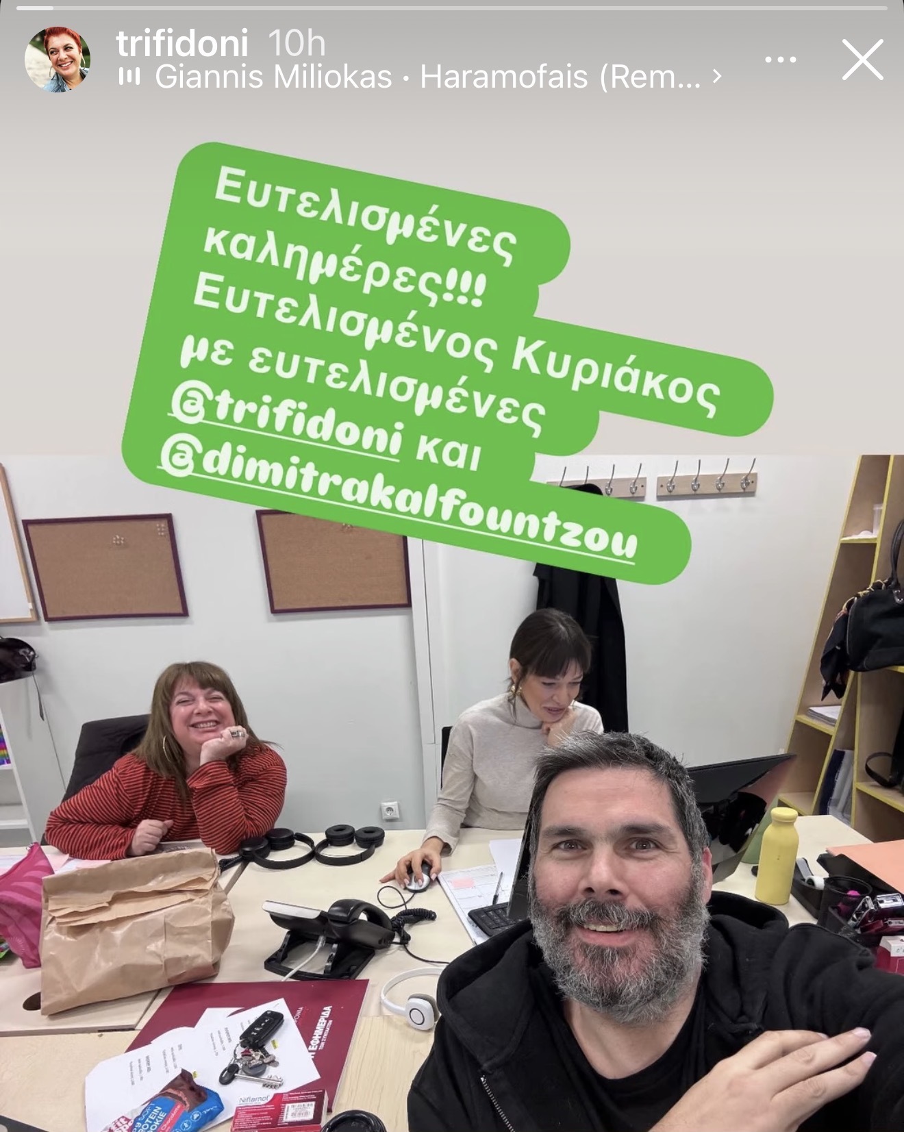 Στο «παιχνίδι» ομως μπήκε και η αρχισυντάκτρια του Κώστα Τσουρού- και παλιά συνεργάτιδα του Δημήτρη Ουγγαρέζου- Ελεάννα Τρυφίδου, που έκανε repost την ανάρτηση του συνεργάτη της εκπομπής Κυριάκου Μαντούβαλου.