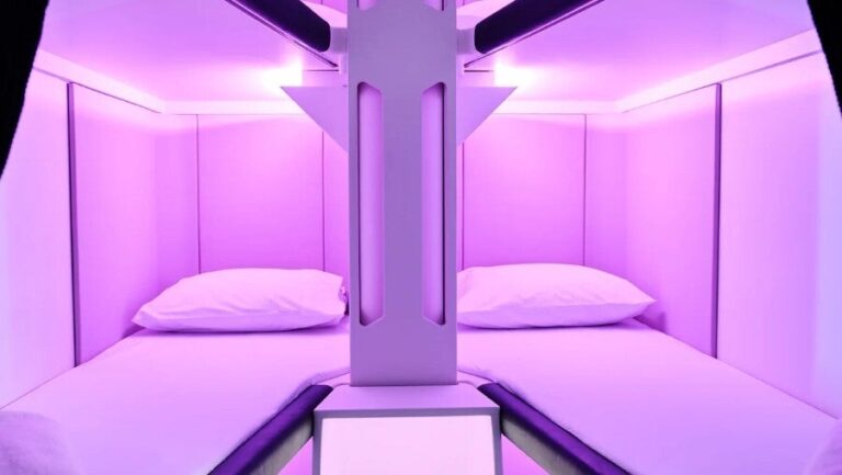 Πρόκειται για το Skynest μια ιδέα ενσωματωμένων κρεβατιών τα οποία παρουσιάστηκαν αυτήν την εβδομάδα αλλά οι κρατήσεις θα ξεκινήσουν τον Σεπτέμβριο του 2024.