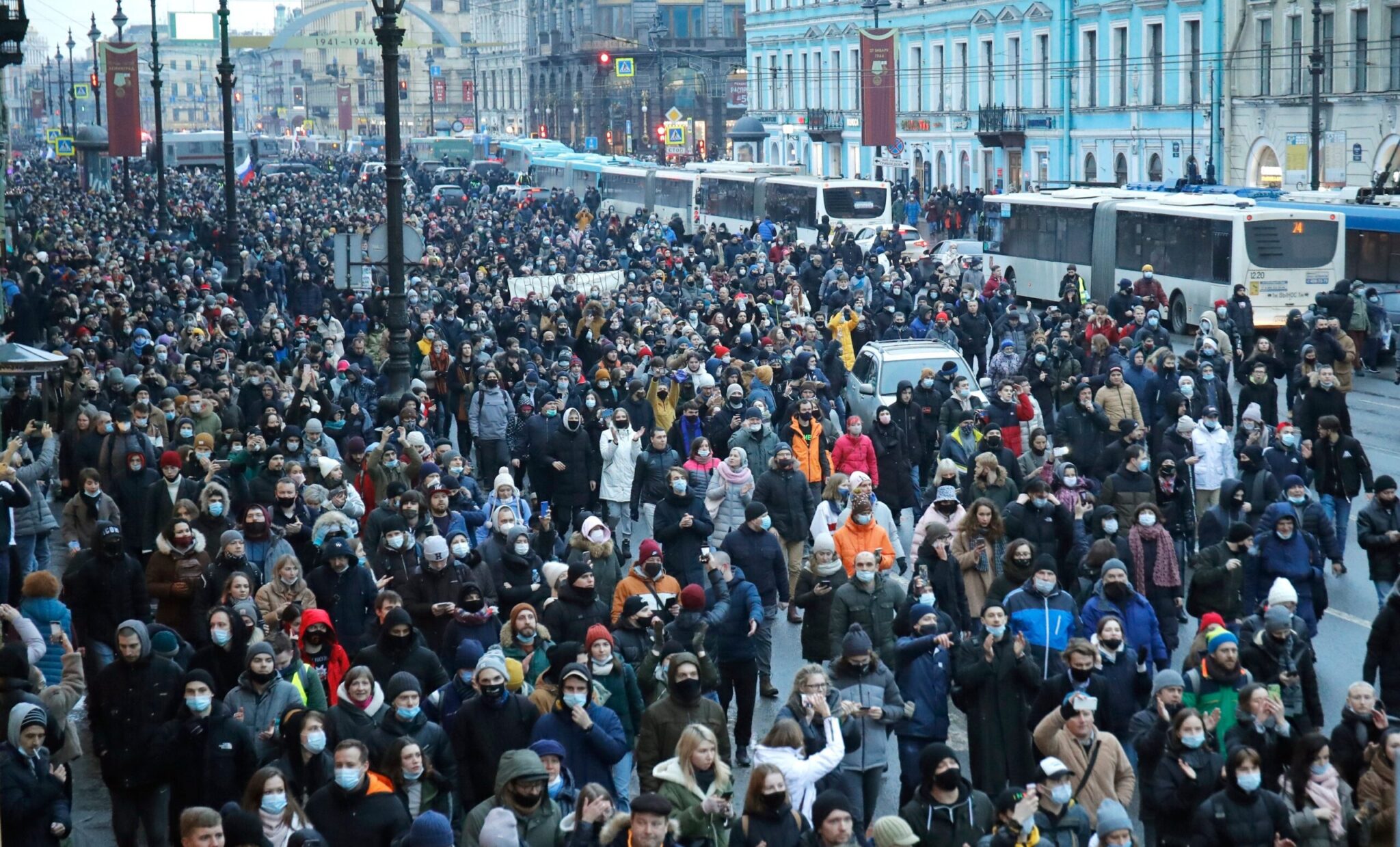 Η ρωσική αστυνομία έθεσε υπό κράτηση χιλιάδες άτομα ανά τη Ρωσία το Σάββατο και χρησιμοποίησε βία για να διαλύσει συγκεντρώσεις ανά τη χώρα, καθώς δεκάδες χιλιάδες διαδηλωτές απαιτούσαν την απελευθέρωση του επικριτή του Κρεμλίνου, Αλεξέι Ναβάλνι- η σύζυγος του οποίου ήταν μεταξύ των συλληφθέντων.
