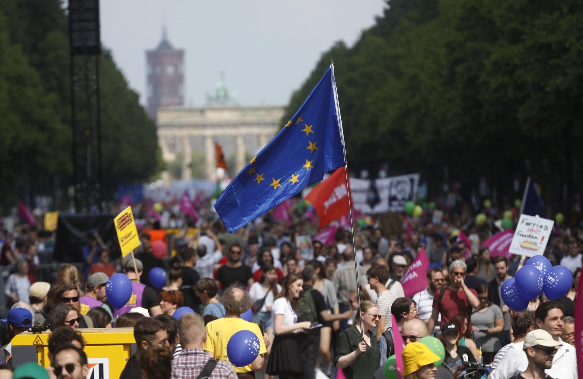 Στο Βερολίνο, 20.000 διαδηλωτές, σύμφωνα με τους διοργανωτές, πολλές χιλιάδες, σύμφωνα με την αστυνομία, έκαναν πορεία από την εμβληματική Αλεξάντερπλατς μέχρι την Στήλη της Νίκης, στο πάρκο του Τιργκάρτεν.