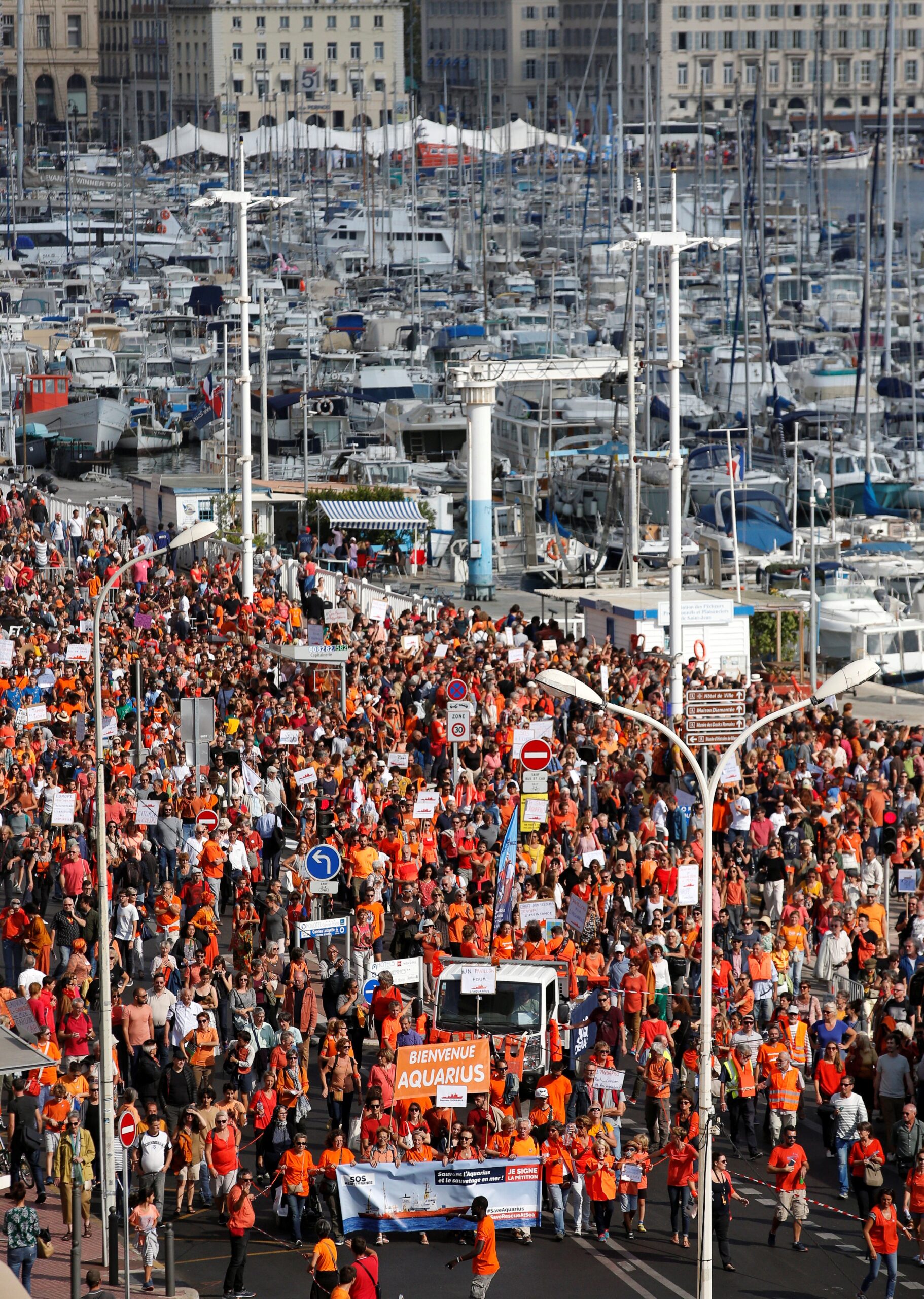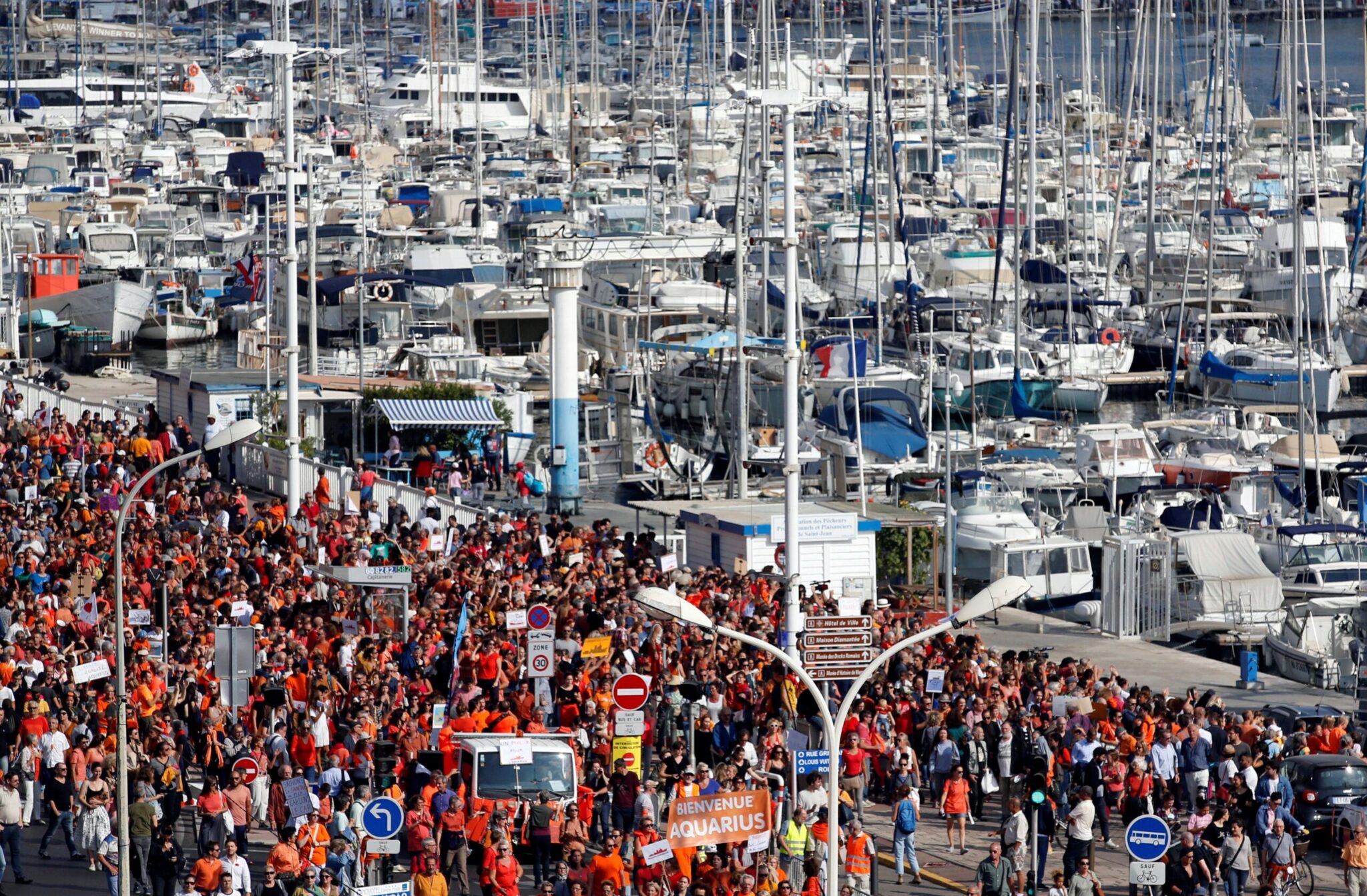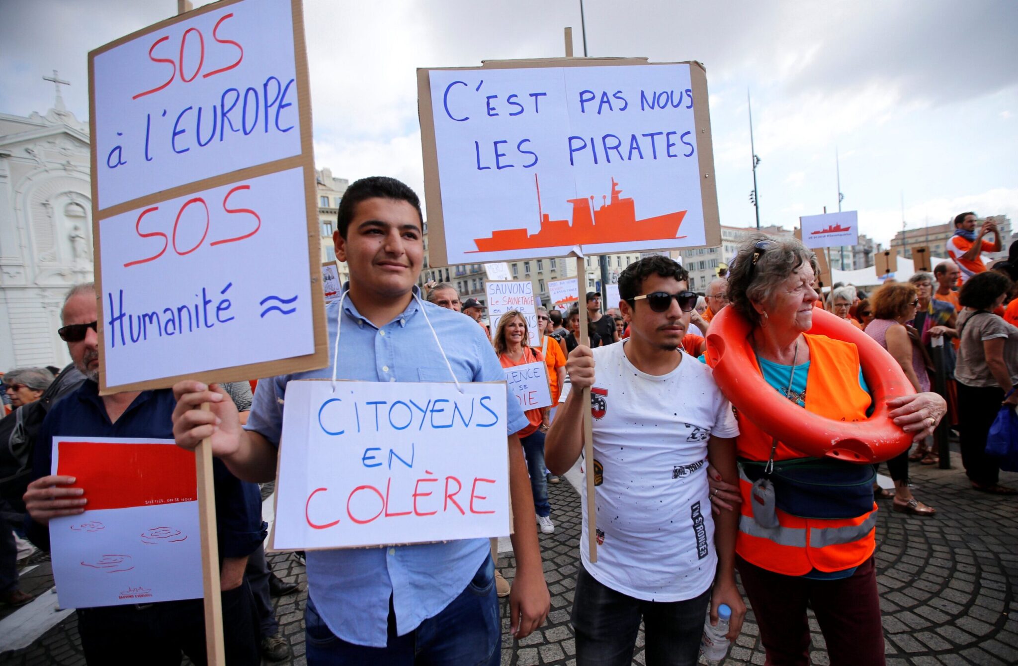 Στην Μασσαλία, έδρα της οργάνωσης, όπου είναι ελλιμενισμένο του Aquarius, 3.500 άνθρωποι συγκεντρώθηκαν στο Παλιό Λιμάνι, σύμφωνα με την αστυνομία.
