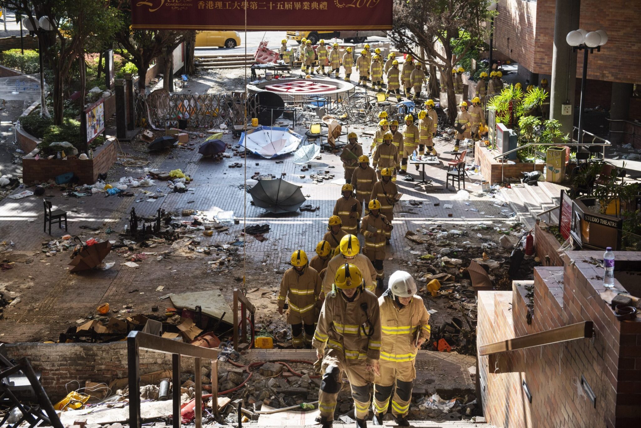 Όταν η αστυνομία και οι πυροσβέστες ξεκίνησαν την επιχείρησή τους, που έχει σκοπό να συγκεντρώσει στοιχεία για την έρευνα και να ασφαλίσει την πανεπιστημιούπολη έντεκα ημέρες μετά την έναρξη της πολιορκίας, δεν διαπιστώθηκε παρουσία διαδηλωτών.