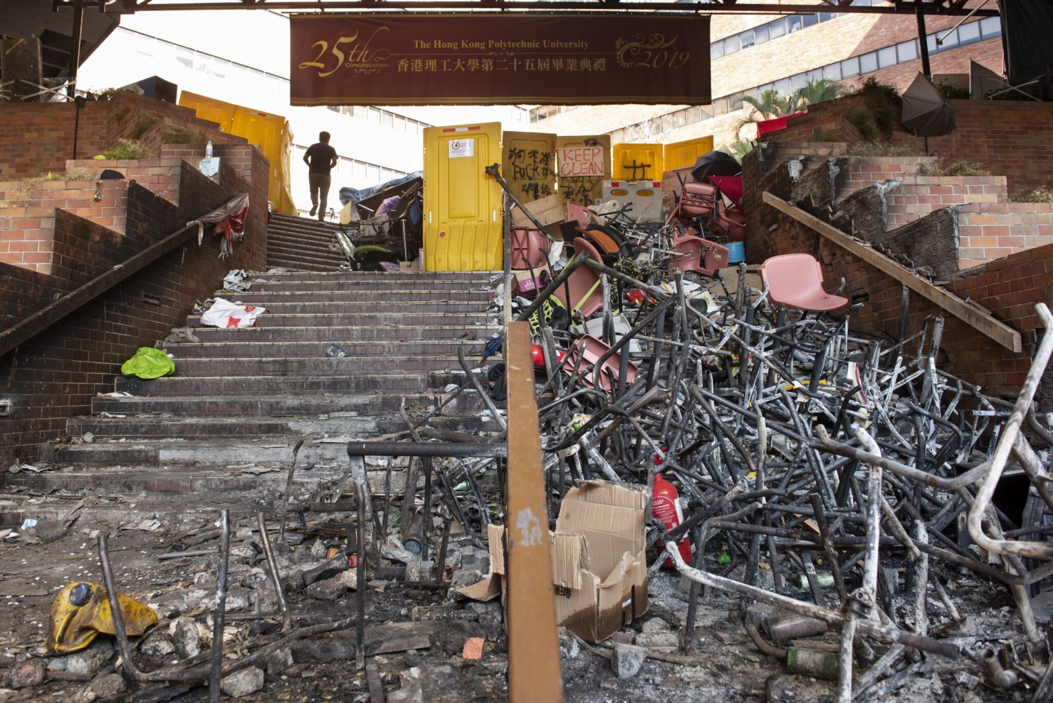 Η Πολυτεχνική Σχολή του Χονγκ Κονγκ ήταν το επίκεντρο της αμφισβήτησης στις 17 Νοεμβρίου όταν ξέσπασαν βίαιες συγκρούσεις ανάμεσα στους διαδηλωτές και την αστυνομία.
