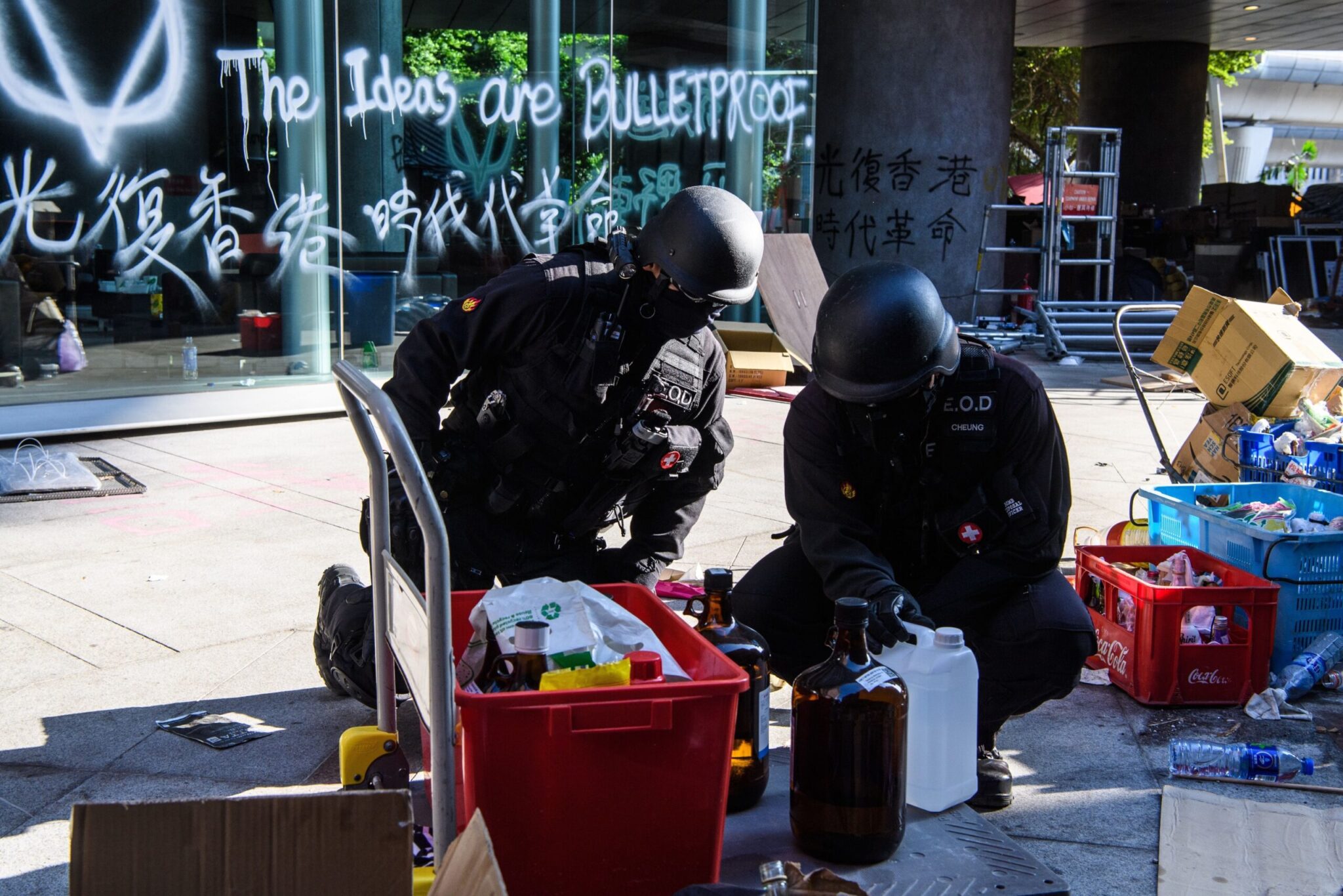 Η αστυνομία του Χονγκ Κονγκ μπήκε σήμερα, έπειτα από πολυήμερη πολιορκία, στην πολυτεχνειούπολη και ανέλαβε το έργο της περισυλλογής των αυτοσχέδιων βομβών μολότοφ και άλλων επικίνδυνων υλικών που είχαν αφήσει οι φιλοδημοκρατικοί διαδηλωτές.
