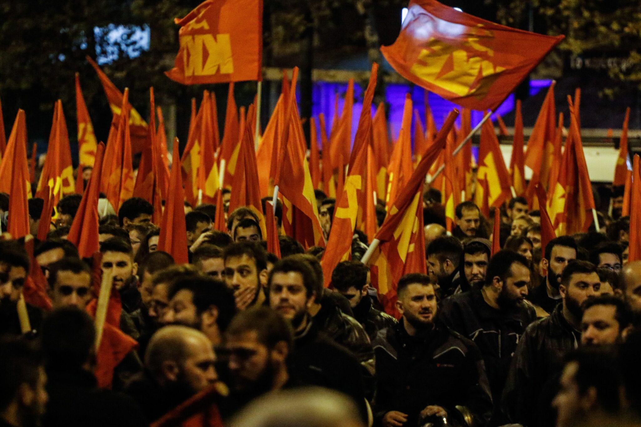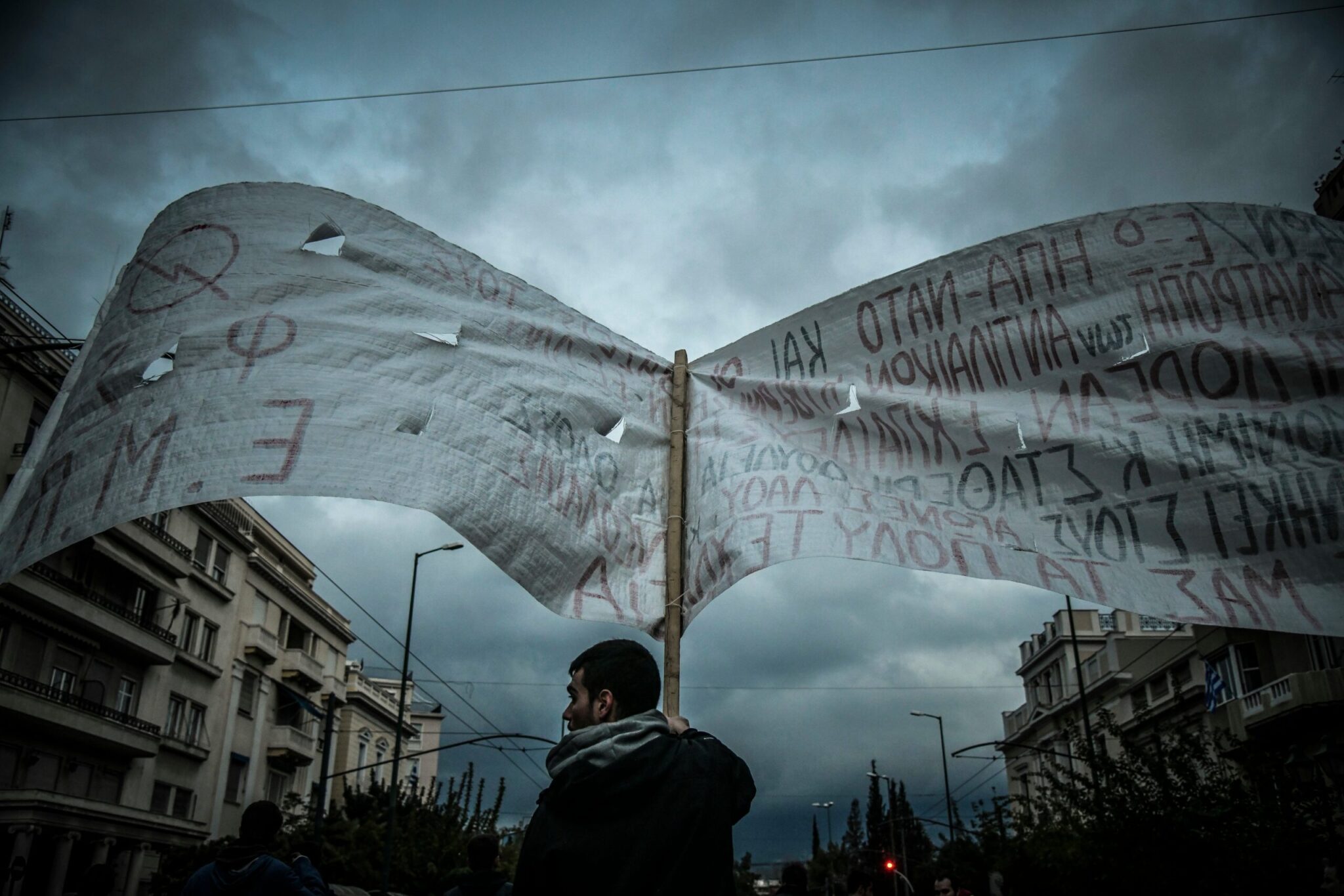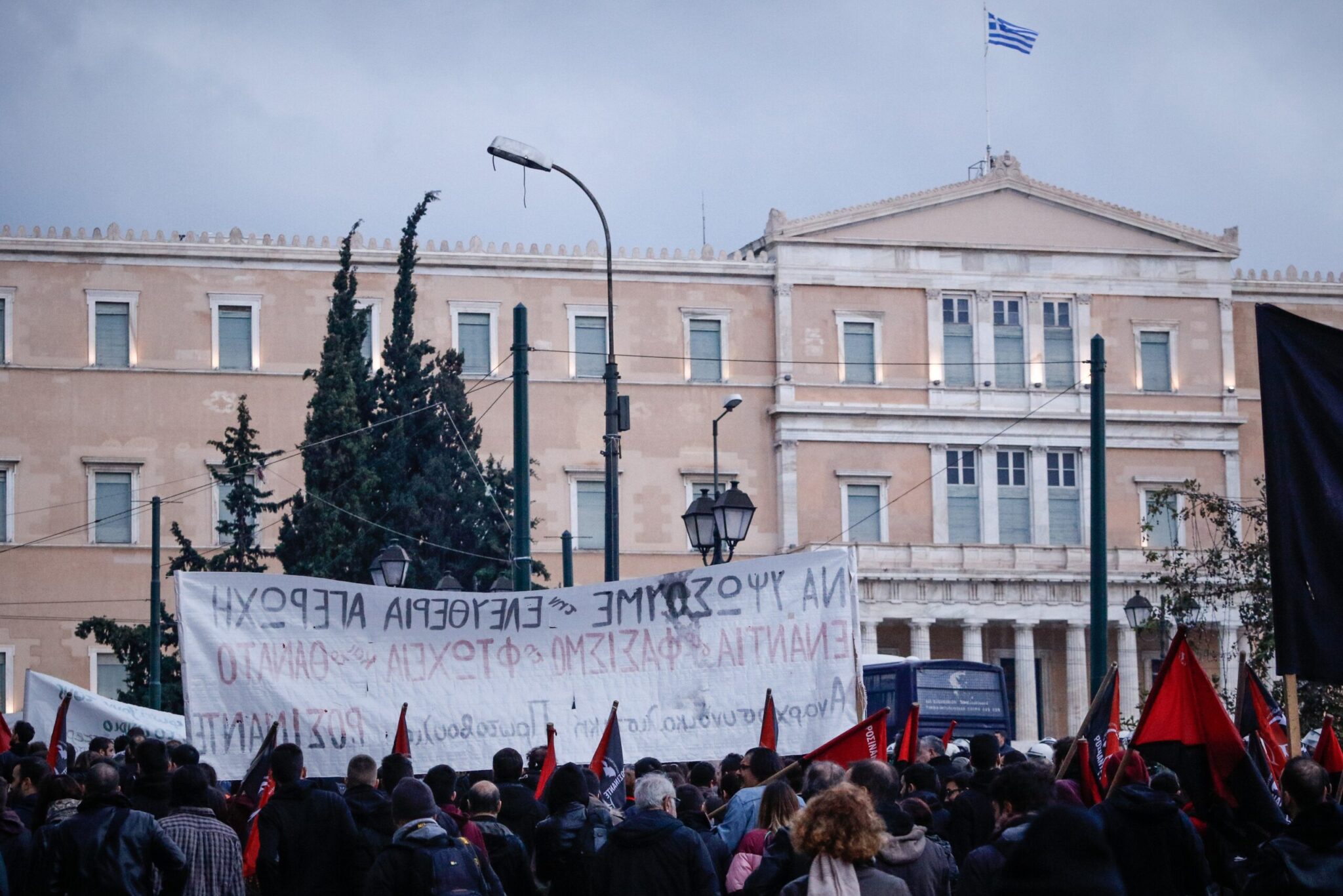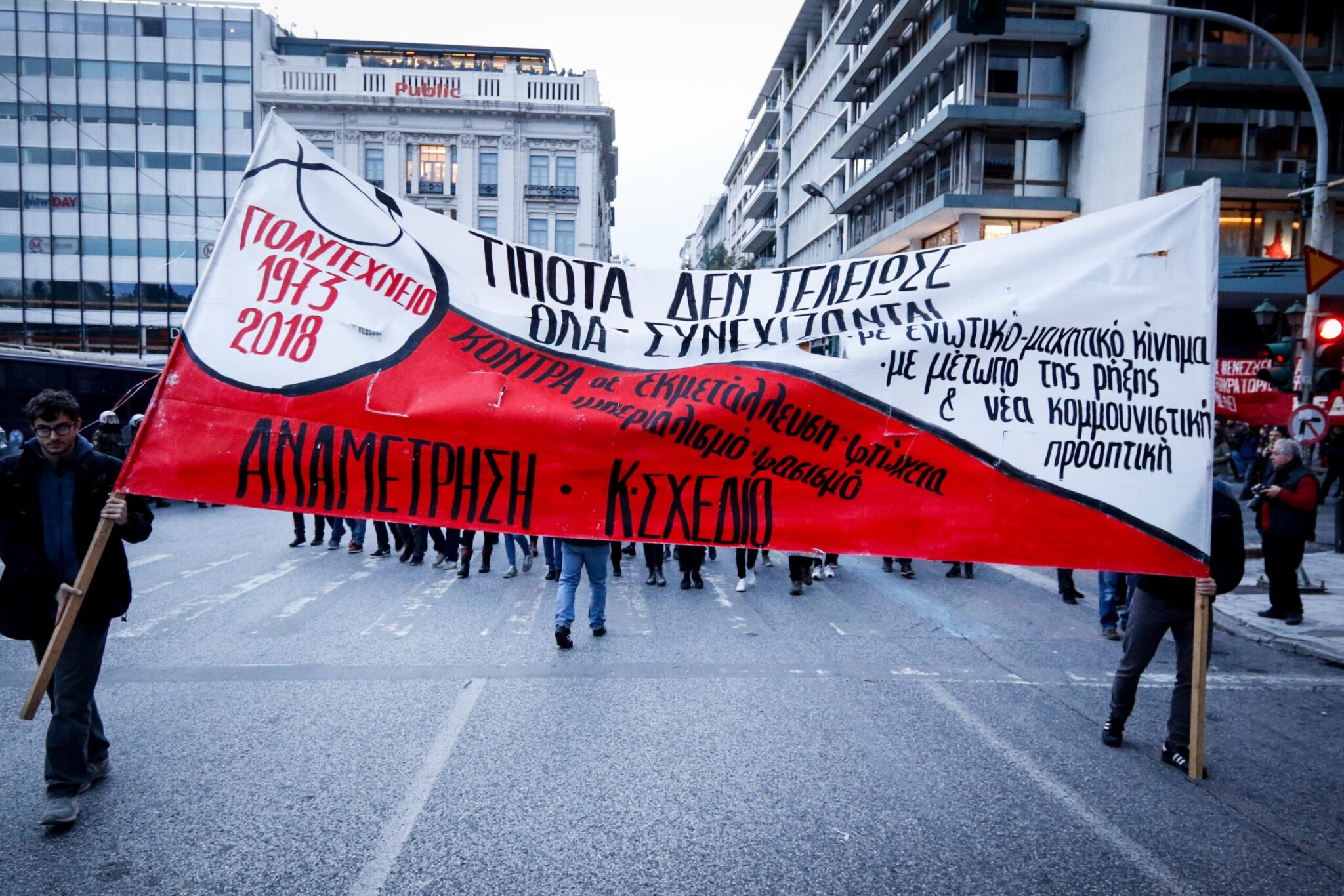 Αργά το απόγευμα του Σαββάτου ολοκληρώθηκε η μαζική διαδήλωση για τα 45 χρόνια από την εξέγερση του Πολυτεχνείου. Φοιτητικοί σύλλογοι, φορείς, κόμματα κι οργανώσεις της Αριστεράς, σωματεία και συλλογικότητες του αντιεξουσιαστικού χώρου συγκεντρώθηκαν στην Πλατεία Κλαυθμώνος και κατευθύνθηκαν προς την αμερικάνικη πρεσβεία.