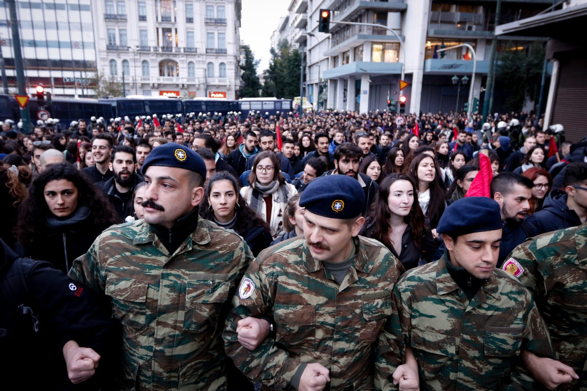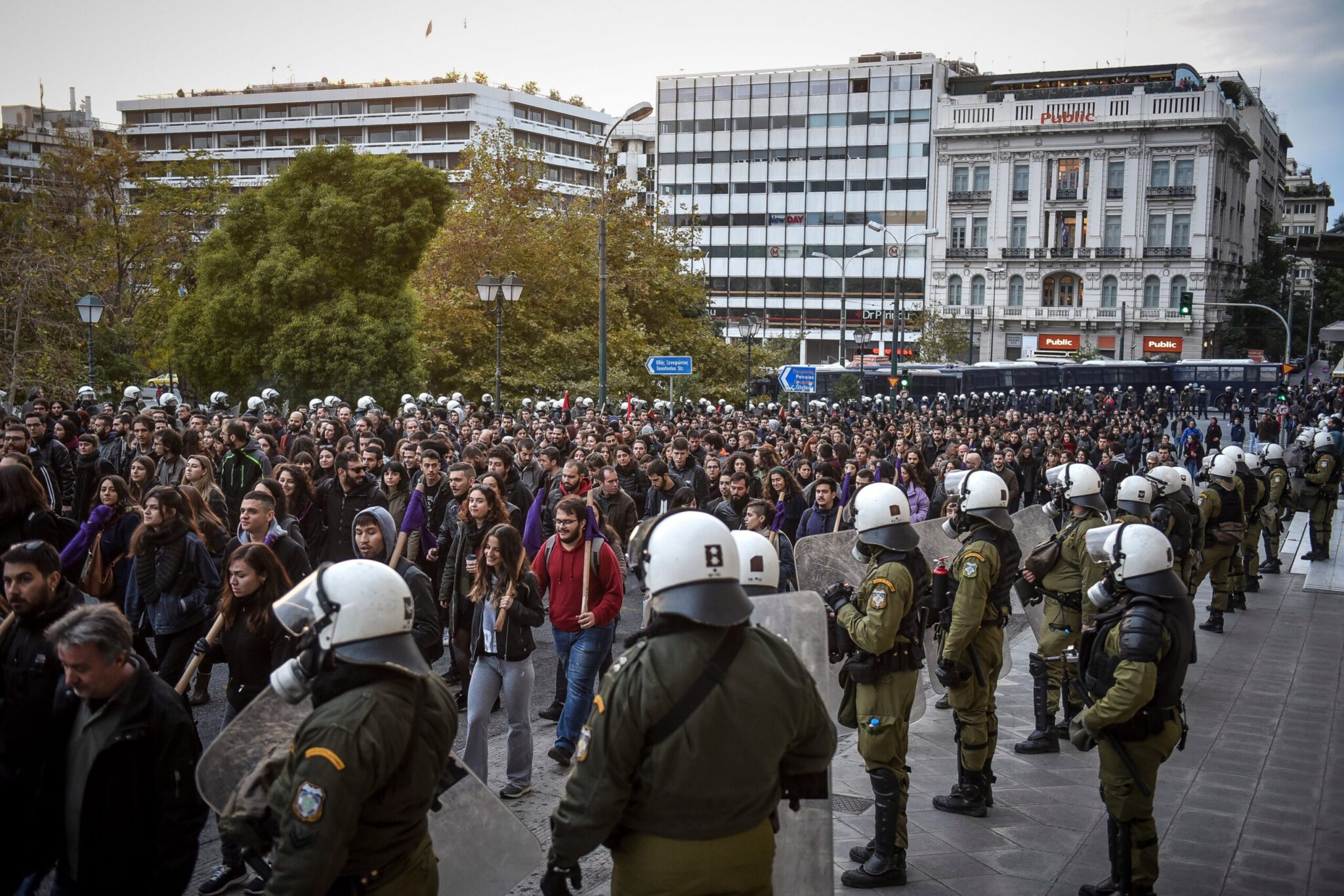 Νωρίτερα, όταν έκλεισαν οι πύλες του Πολυτεχνείου, φοιτητικοί σύλλογοι πραγματοποίησαν προσύγκεντρωση και με πορεία κατευθύνθηκαν στην πλατεία Κλαυθμώνος περιμένοντας να ξεκινήσει ο κύριος όγκος της διαδήλωσης.