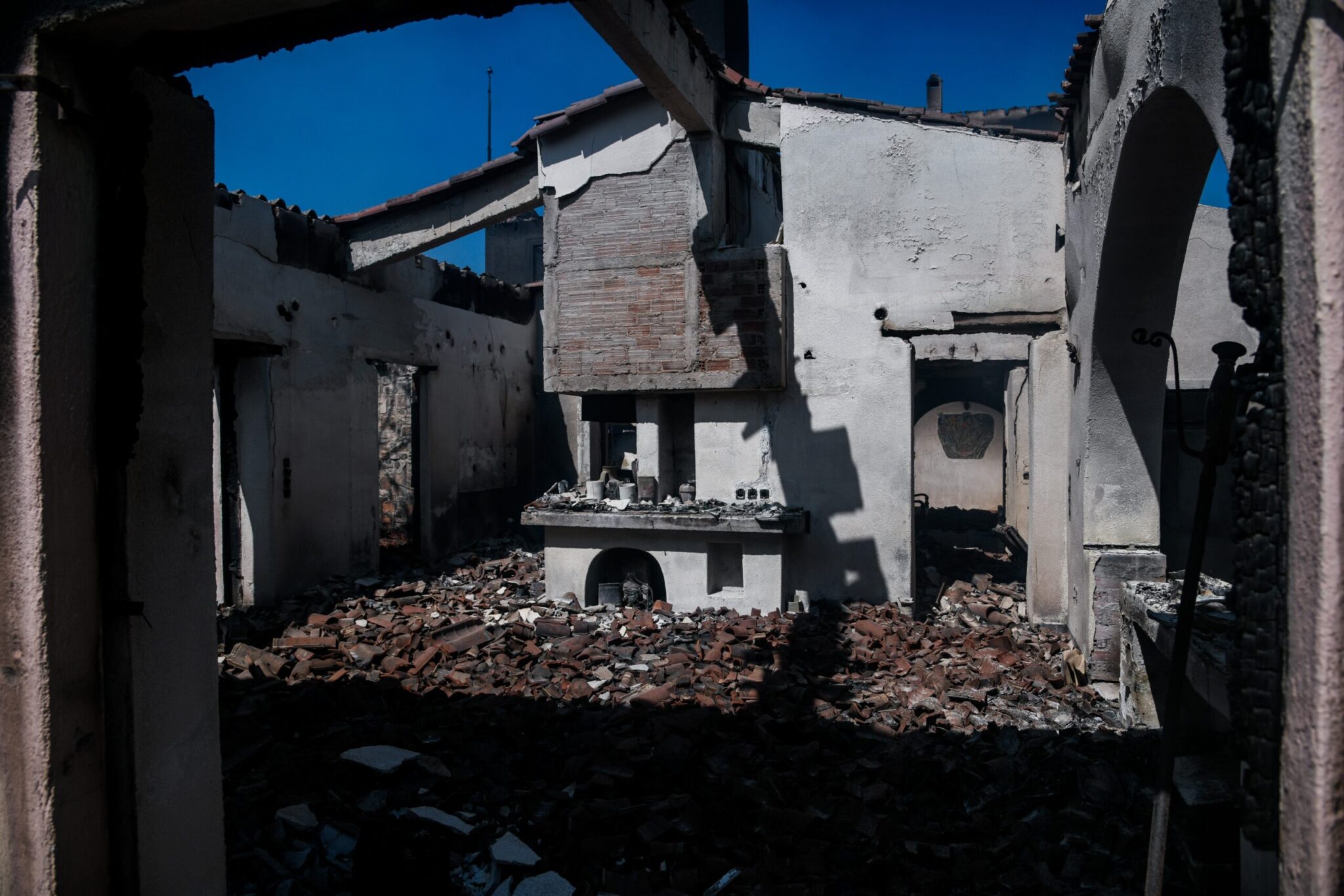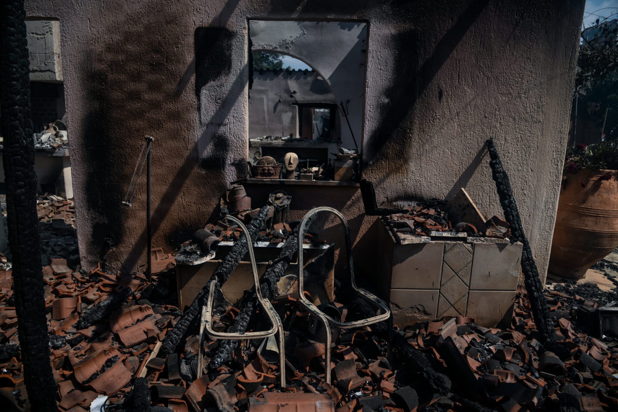 Καμένα σπίτια, χιλιάδες στρέμματα γης, μεγάλη έκταση δάσους έγιναν στάχτη. Οι εικόνες από τα φωτογραφικά πρακτορεία είναι αποκαρδιωτικές και ακόμα ο απολογισμός για την έκταση της καταστροφής δεν έχει γίνει, αφού ακόμα δίνεται μάχη με τις φλόγες.
