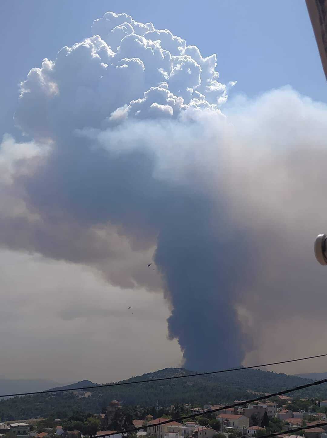 Κατά τη διάρκεια της Τετάρτης 18 Αυγούστου 2021, η επικράτηση ασθενέστερων ανέμων και αστάθειας στην ατμόσφαιρα βοήθησε ώστε η πυρκαγιά να αναπτύξει ισχυρή επαγωγική στήλη (ισχυρά ανοδικά ρεύματα εξαιτίας της πολύ ισχυρής θέρμανσης του αέρα από την καύση της καύσιμης ύλης), οδηγώντας τελικά στην εμφάνιση πυροσωρείτη.