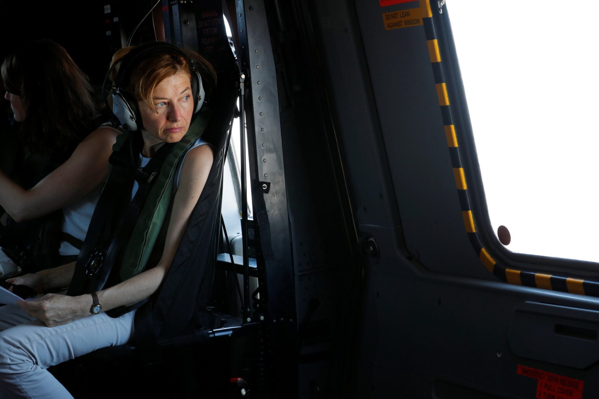 Η Γαλλίδα υπουργός Αμυνας Φλοράνς Παρλύ εν πτήση με ελικόπτερο του γαλλικού πολεμικού ναυτικού στη θαλάσσια περιοχή της Κύπρου. 17 Ιουλίου 2017. REUTERS/Philippe Wojazer Philippe Wojazer / Reuters