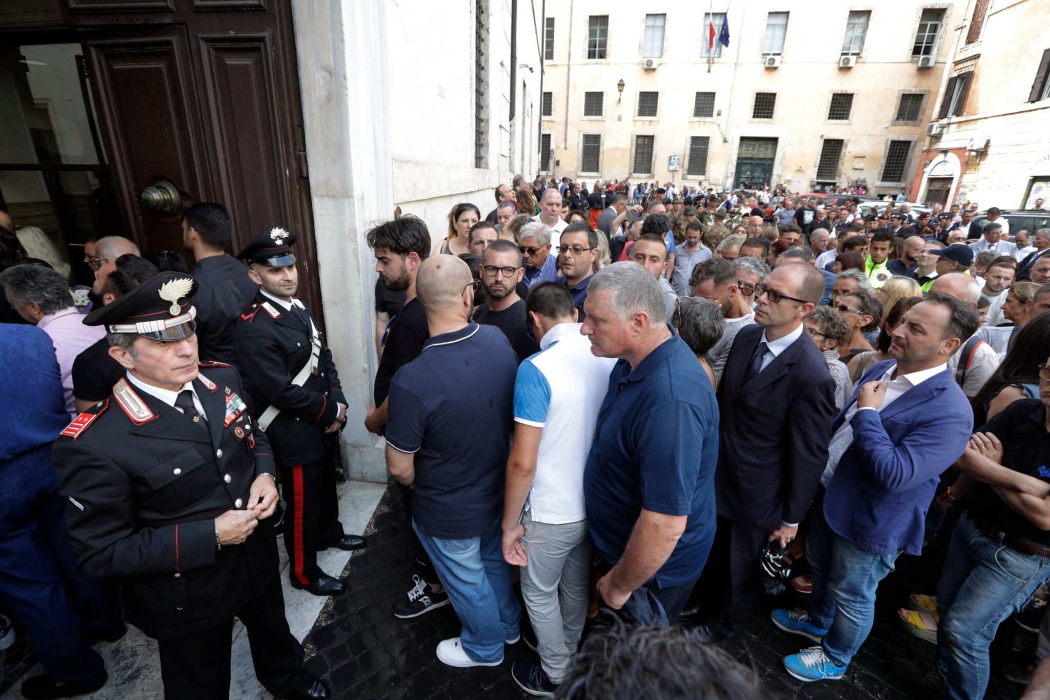 Κρατώντας λουλούδια στα χέρια τους, χιλιάδες άνθρωποι, σύμφωνα με έναν φωτορεπόρτερ του Γαλλικού Πρακτορείου, πέρασαν σήμερα από τον νεκροθάλαμο της εκκλησίας, όπου έχει μεταφερθεί η σορός του άτυχου άνδρα. Η κηδεία του αναμένεται να τελεστεί αύριο το μεσημέρι στη γενέτειρά του αστυνομικού στους πρόποδες του Βεζούβιου, παρουσία των δύο πολιτικών αρχηγών της κυβέρνησης Ματέο Σαλβίνι και Λουίτζι Ντι Μάιο.