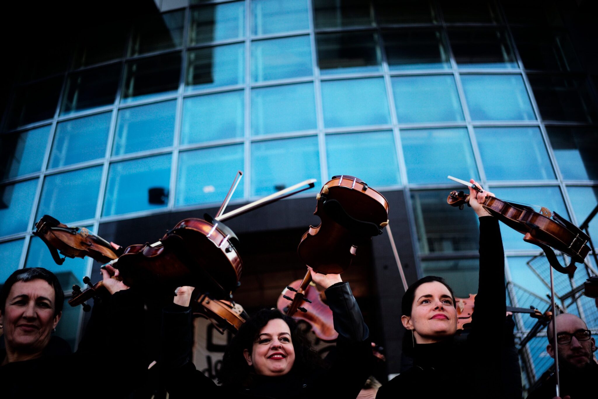 Ερμηνεύοντας τον αριστουργηματικό «Χορό των Ιπποτών» από το μπαλέτο του Σεργκέι Προκόφιεφ «Ρωμαίος και Ιουλιέτα», με φόντο πανό που έγραφαν «η Όπερα του Παρισιού σε απεργία» και «Ο Πολιτισμός σε κίνδυνο», οι μουσικοί δήλωσαν ότι εργάζονταν πάρα πολλές ώρες, συχνά και τα Σαββατοκύριακα και ότι είναι αντίθετοι με την αύξηση των ορίων ηλικίας συνταξιοδότησης που προτείνει το σχέδιο Μακρόν.