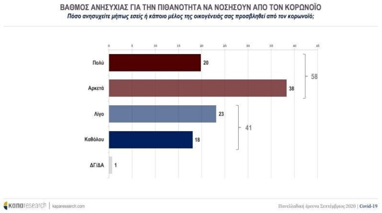Ως προς τον βαθμό ανησυχίας για το αν νοσήσουν οι ίδιοι ή κάποιο μέλος της οικογένειας, η κοινή γνώμη είναι μάλλον μοιρασμένη.