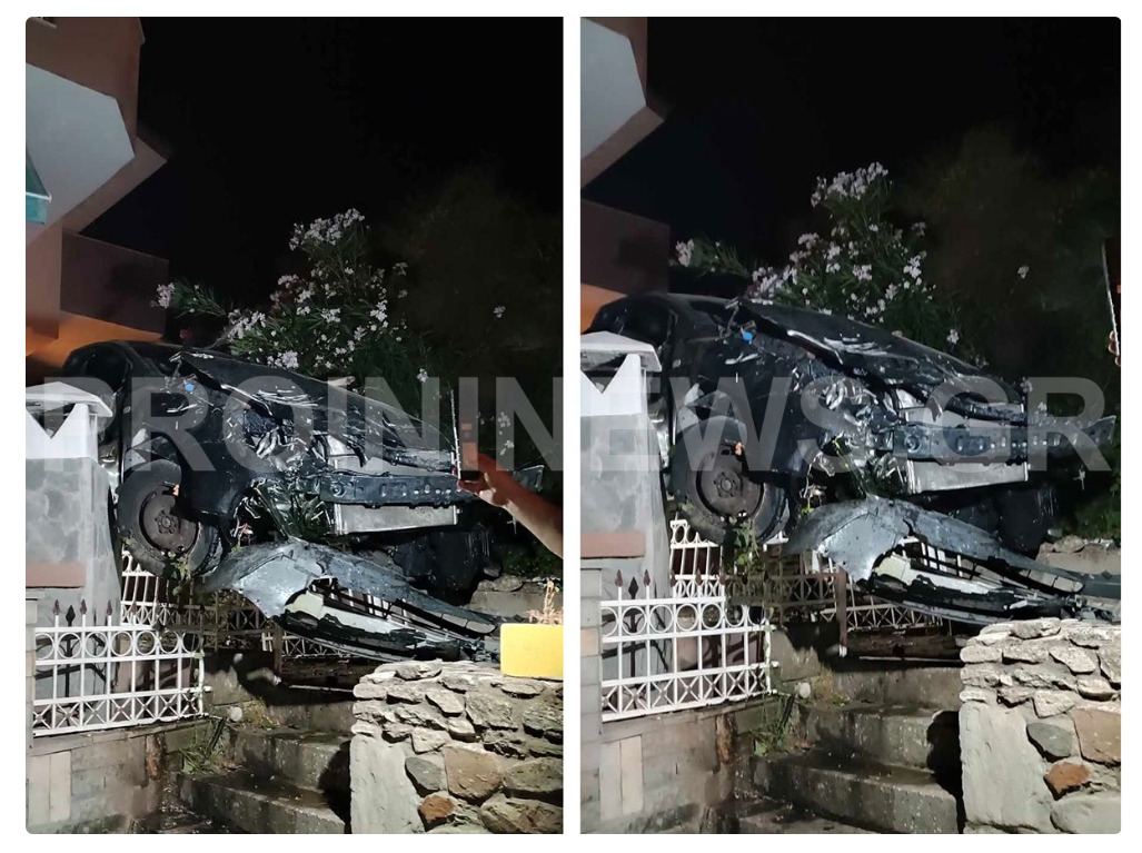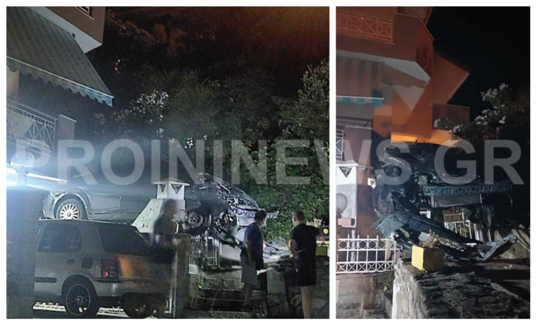 Το ΙΧ έπεσε από 20 μέτρα ύψος που είναι η απόσταση από το δρόμο στα σπίτια και προσγειώθηκε με τις ρόδες στην αυλή, χωρίς ευτυχώς να τραυματιστεί κανείς.