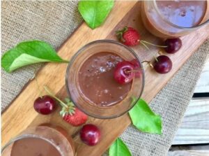 Αφήνουμε στο ψυγείο για 3-5 ώρες και σερβίρουμε με φρούτα.
