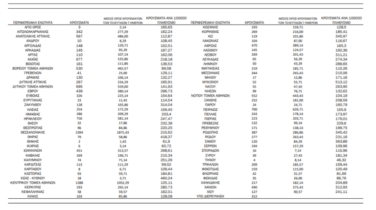 Με βάση τα επιβεβαιωμένα κρούσματα των τελευταίων 7 ημερών, 381
