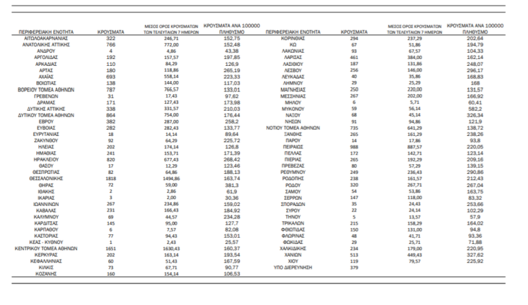 Με βάση τα επιβεβαιωμένα κρούσματα των τελευταίων 7 ημερών, 416