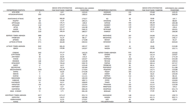 Με βάση τα επιβεβαιωμένα κρούσματα των τελευταίων 7 ημερών, 577