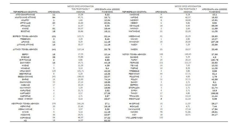 279 κρούσματα στην ΠΕ Κεντρικού Τομέα Αθηνών