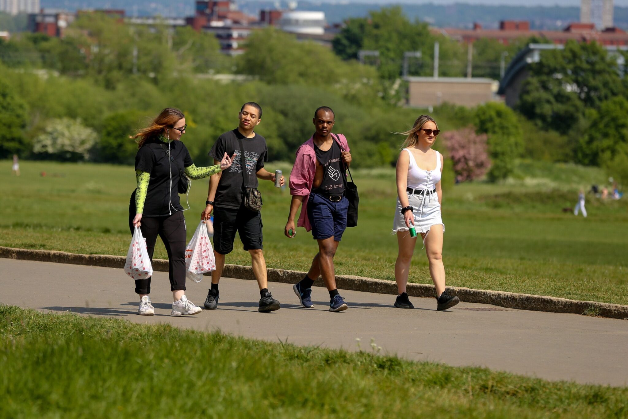 LONDON, UNITED KINGDOM – 2020/05/08: People walking at Alexandra Palace in North London on a warm and sunny bank holiday during coronavirus lockdown.Prime Minister Boris Johnson is set to announce measures to ease coronavirus lockdown, which was introduced to slow the spread of the COVID-19. (Photo by Dinendra Haria/SOPA Images/LightRocket via Getty Images) SOPA Images via Getty Images