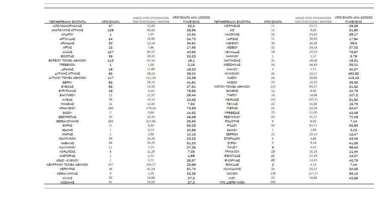 21 κρούσματα στην Π.Ε. Φθιώτιδας