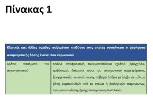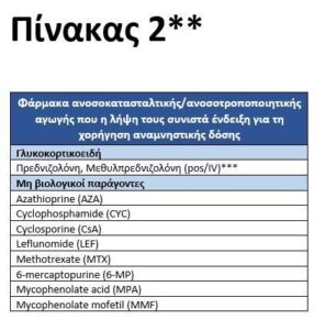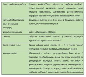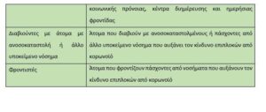 • σε διαβιούντες με άτομα σε ανοσοκαταστολή ή άλλο υποκείμενο νόσημα (βλ. Πίνακες 1 και 2)