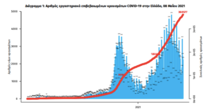Με βάση τα επιβεβαιωμένα κρούσματα των τελευταίων 7 ημερών, 52 θεωρούνται σχετιζόμενα με ταξίδι από το εξωτερικό και 2.062 είναι σχετιζόμενα με ήδη γνωστό κρούσμα.