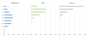 Εκ των 737 ασθενών που νοσηλεύονται διασωληνωμένοι 62.% είναι άνδρες. Η διάμεση ηλικία των ασθενών σε ΜΕΘ είναι 67 έτη και το 83.7% έχει υποκείμενο νόσημα ή/και ηλικία 70 ετών και άνω.
