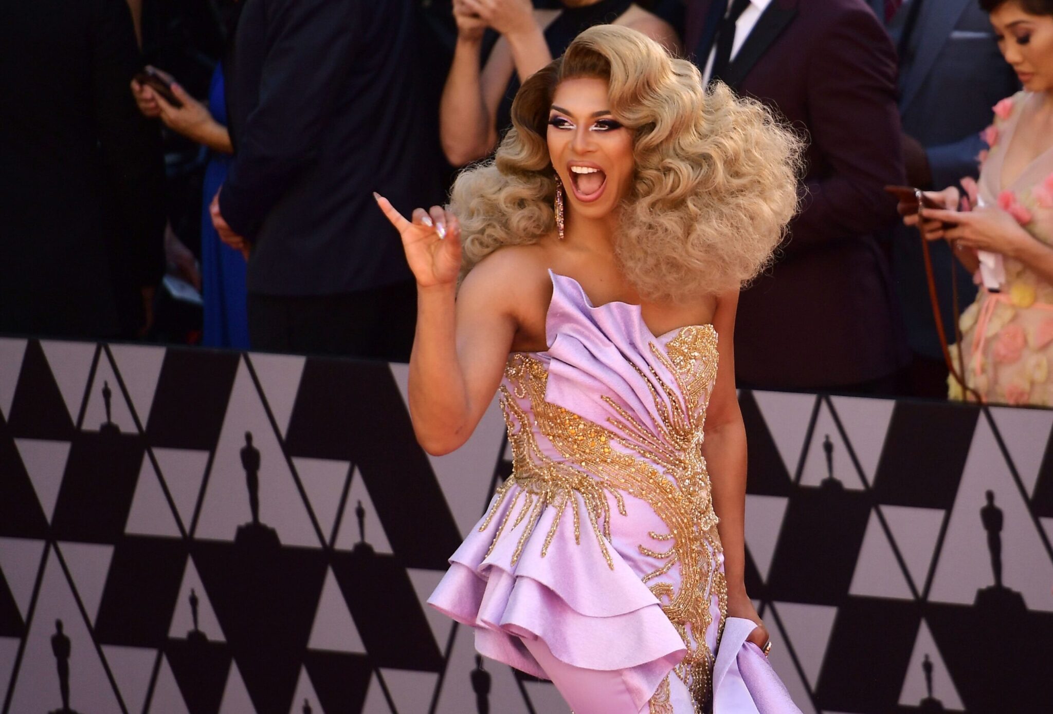 12:16 Η διαγωνιζόμενη στο «RuPaul’s Drag Race» Σάντζελα, χαιρετάει τους θαυμαστές που περιμένουν στο κόκκινο χαλί με άκρως εντυπωσιακή λιλά ντραπέ φόρεμα, σε συνδυασμό με κεντήματα σε αποχρώσεις του χρυσού.