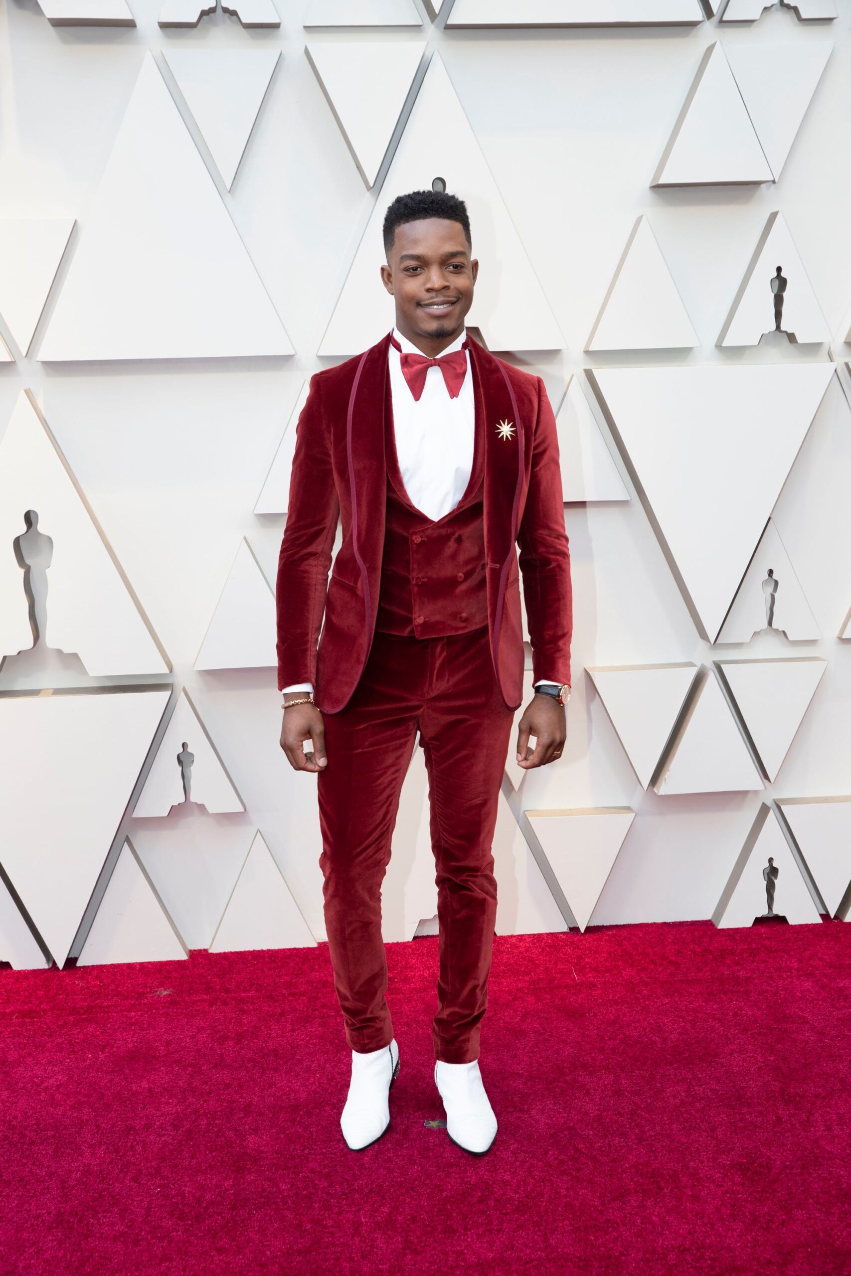 01.28 Ο Στέφαν Τζέιμς, πρωταγωνιστής της ταινίας «If Beale Street Could Talk» με βελούδο κόκκινο κοστούμι.