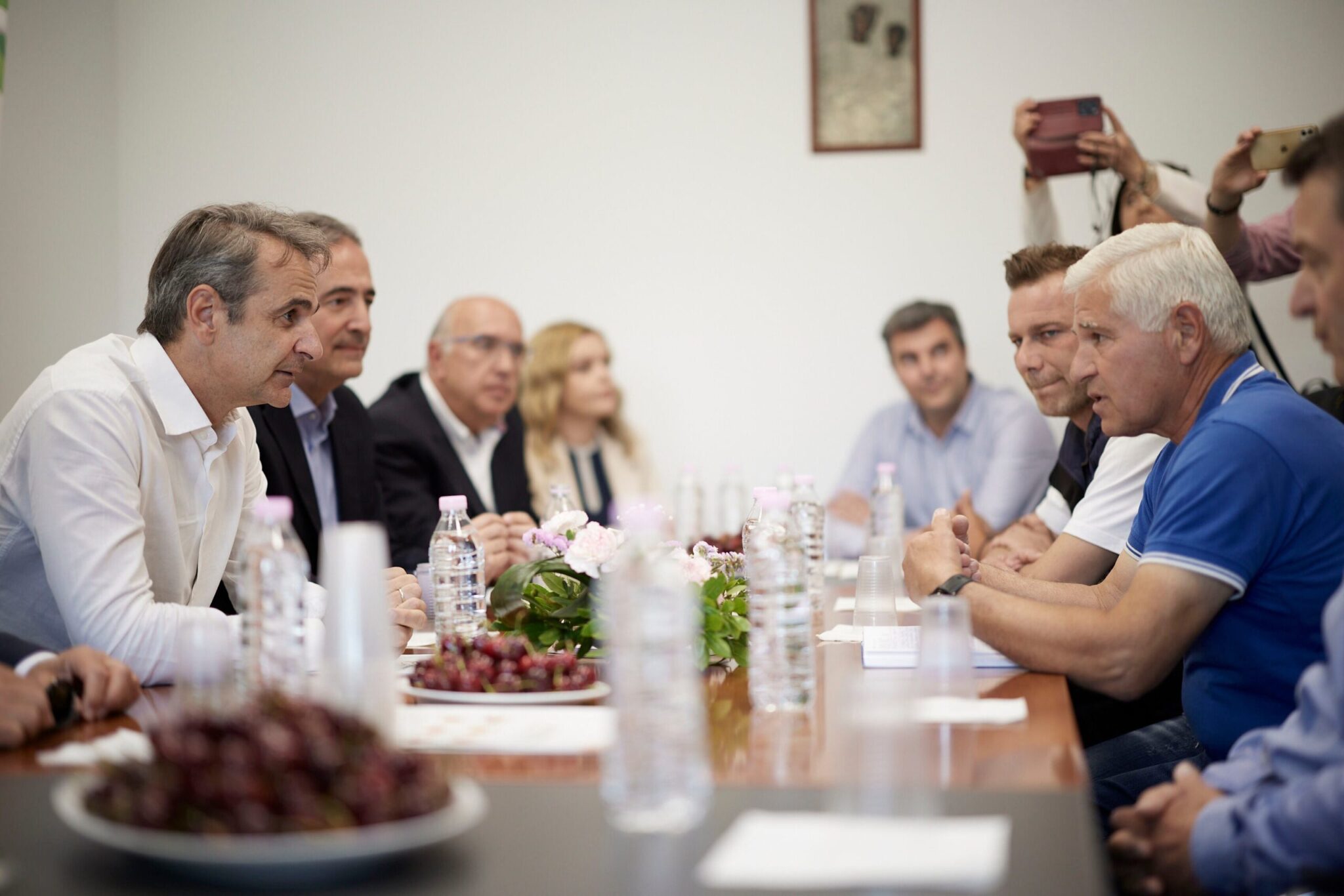 Tα μέτρα για τη μείωση του κόστους παραγωγής ήταν ένα από τα θέματα που συζήτησε ο Κυριάκος Μητσοτάκης με τις διοικήσεις και τα μέλη των αγροτικών συνεταιρισμών ΑΣΟΠ «Δήμητρα» και ΑΣΕΠΟΠ στο Βελβεντό Κοζάνης.