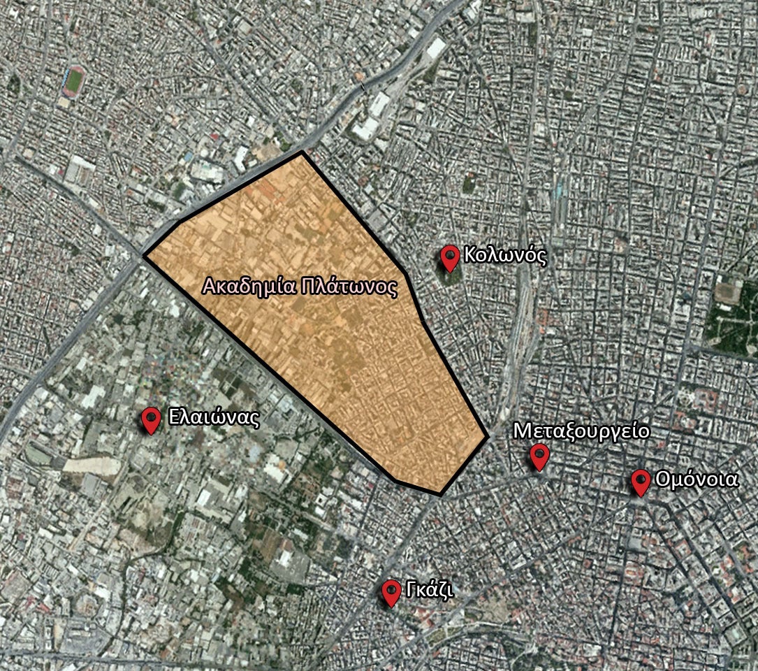 Από την εποχή του Μεσοπολέμου, οπότε άρχισαν οι έρευνες με δαπάνες του ομογενούς Παναγιώτη Αριστόφρονος υπό την αιγίδα της Ακαδημίας Αθηνών, αλλά και κατά τις δεκαετίες του ’60, του ’80 και ιδιαιτέρως του ’90, οπότε  με τη σύμπραξη του Υπουργείου Πολιτισμού και του τότε ΥΠΕΧΩΔΕ έγιναν μαζικές απαλλοτριώσεις ιδιοκτησιών με αποτέλεσμα την εκτεταμένη μετεγκατάσταση κατοίκων, επαγγελματιών και βιοτεχνών, για να καταλήξουμε στη σημερινή εικόνα του αρχαιολογικού χώρου έκτασης περίπου 135 στρεμμάτων. Μέσα σε αυτόν εμπεριέχονται οι αρχαιότητες του Γυμνασίου, της «Ιεράς Οικίας», του Περιστυλίου και άλλα κατάλοιπα των προϊστορικών, κλασικών και ελληνιστικών χρόνων, που ήλθαν στο φως και με τις έρευνες της Αρχαιολογικής Εταιρείας και του Υπουργείου Πολιτισμού, καθώς και ένας εκτεταμένος χώρος πρασίνου και αναψυχής για τους κατοίκους της περιοχής, ο οποίος διαμορφώθηκε από τον Δήμο Αθηναίων. Παρά τη βαρύνουσα σημασία του χώρου, που συμπίπτει με το αρχαίο αλσώδες προάστειο και το Γυμνάσιο της Ακαδήμειας, όπου ίδρυσε ο Πλάτων τη φιλοσοφική του σχολή, η σημερινή περιοχή γύρω από τον αρχαιολογικό χώρο αποτελεί μία από τις υποβαθμισμένες γειτονιές της δυτικής Αθήνας (μία από τις πέντε συνοικίες της 4ης Δ.Κ.), και μάλιστα παραγνωρισμένη ως προς την πολιτιστική της υπεραξία.