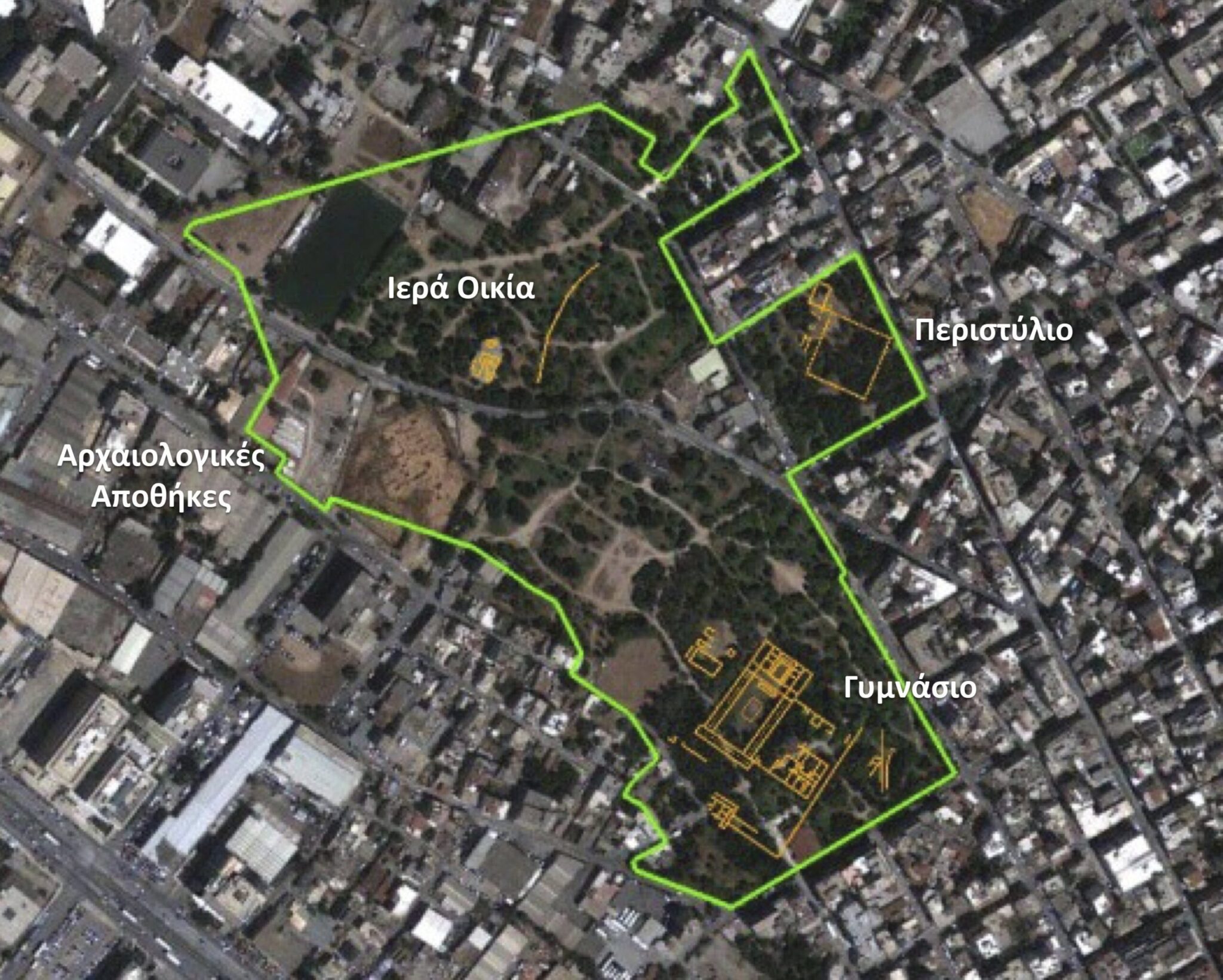 Οι δύο μελέτες αφορούν στο νότιο και ανατολικό τμήμα του αρχαιολογικού χώρου, που περιβάλλονται από τις οδούς Δράκοντος, Κρατύλου, Μοναστηρίου, Αλεξανδρείας, Πολυκράτους, Βασιλικών, Φάωνος και Διονύσου, έκτασης 60 περίπου στρεμμάτων (Τομέας Γυμνασίου) και Μοναστηρίου, Τριπόλεως, Πλάτωνος και Ευκλείδου αντίστοιχα, έκτασης 10 στρεμμάτων (Τομέας Περιστυλίου).