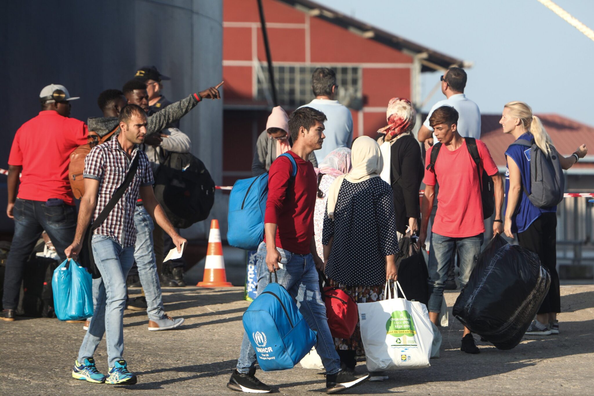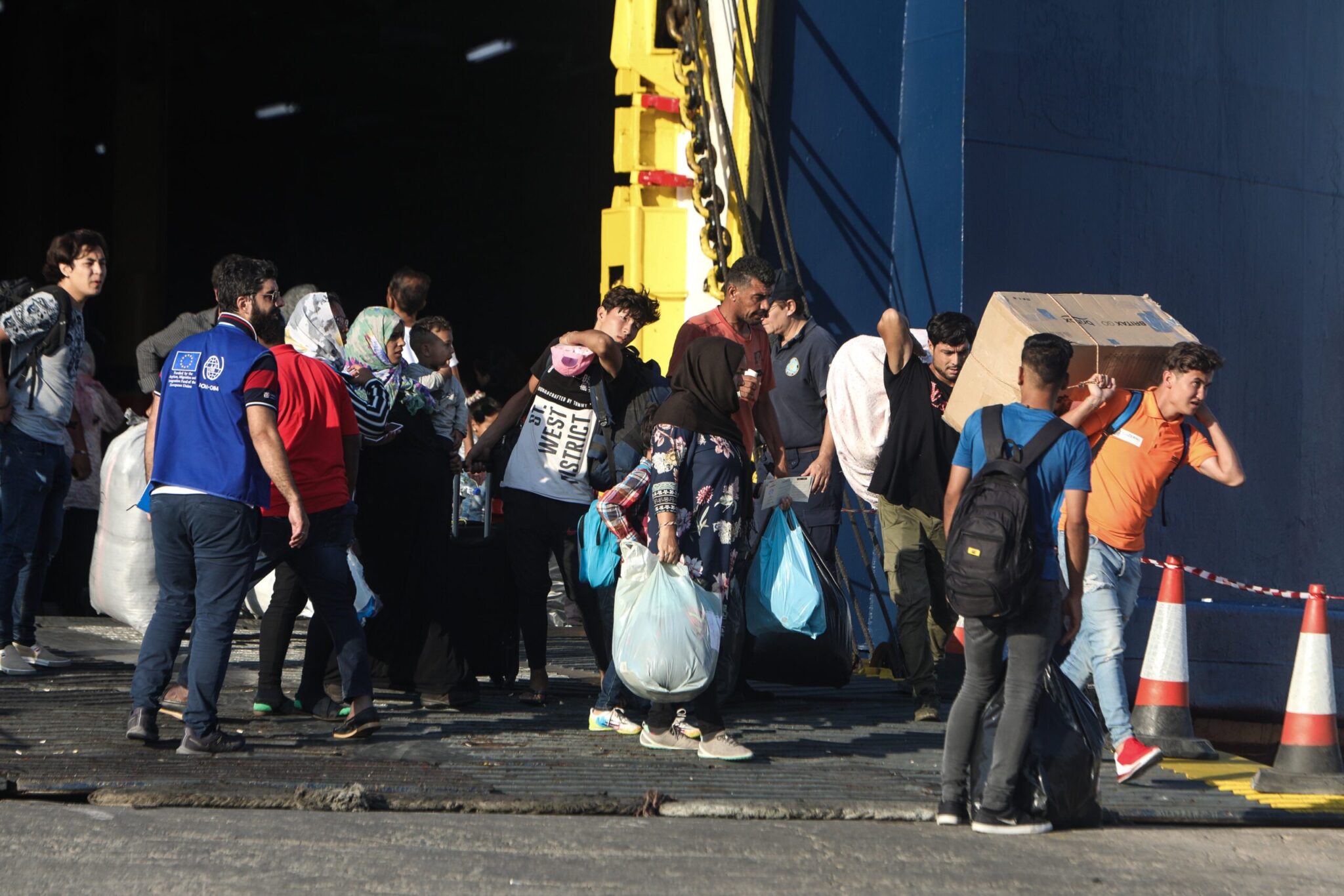 Η μετακίνηση από το λιμάνι της Θεσσαλονίκης στις δομές φιλοξενίας πραγματοποιείται σε συνεργασία με τον Διεθνή Οργανισμό Μετανάστευσης.