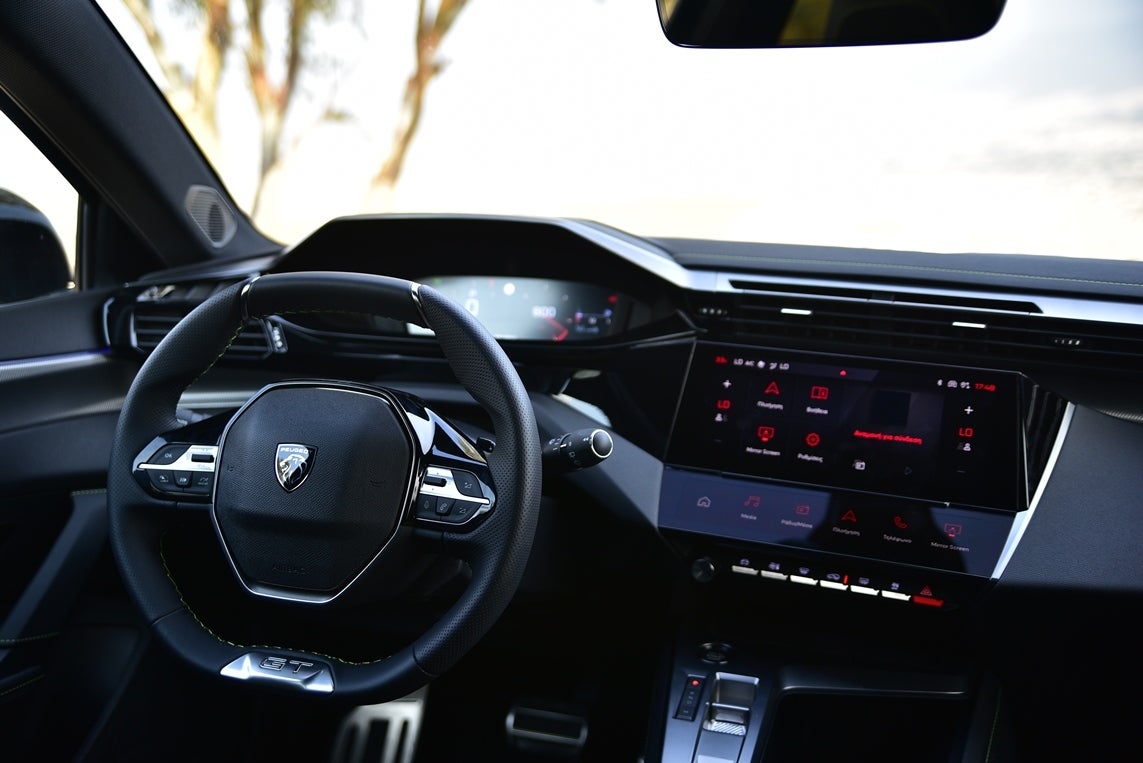 Κι αν εξωτερικά σου κάνει κλικ στο μάτι, στην καμπίνα δύσκολα θα βρεις κάτι που να μην σου αρέσει. Η ψηφιακή τεχνολογία είναι έκδηλη παντού, από τον πίνακα οργάνων μέχρι και την οθόνη αφής, το iCockpit περιλαμβάνει και το σπορ τιμόνι με σχεδόν επίπεδα πάνω και κάτω μέρη (αν υπάρχει ψεγάδι, εντοπίζεται στο ότι δεν βρίσκεις εύκολα την ιδανική ρύθμιση σε ύψος για να βλέπεις και τις ενδείξεις του πίνακα), όπως και τον διακόπτη εκκίνησης στο πάνω μέρος της κονσόλας. Ακριβώς από κάτω, βρίσκεται ο μοχλός για το 8άρι αυτόματο κιβώτιο ταχυτήτων και λίγο πιο κάτω, στην ίδια ευθεία, ο διακόπτης για τα προγράμματα λειτουργίας του συστήματος κίνησης.