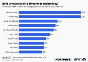 Δημοσκόπηση της YouGov το διάστημα από το Μάιο μέχρι και τον Οκτώβριο ανέδειξε τον Μπόρις Τζόνσον ως τον πιο επικρατέστερο για τη διαδοχή της Τερέζα Μέι: