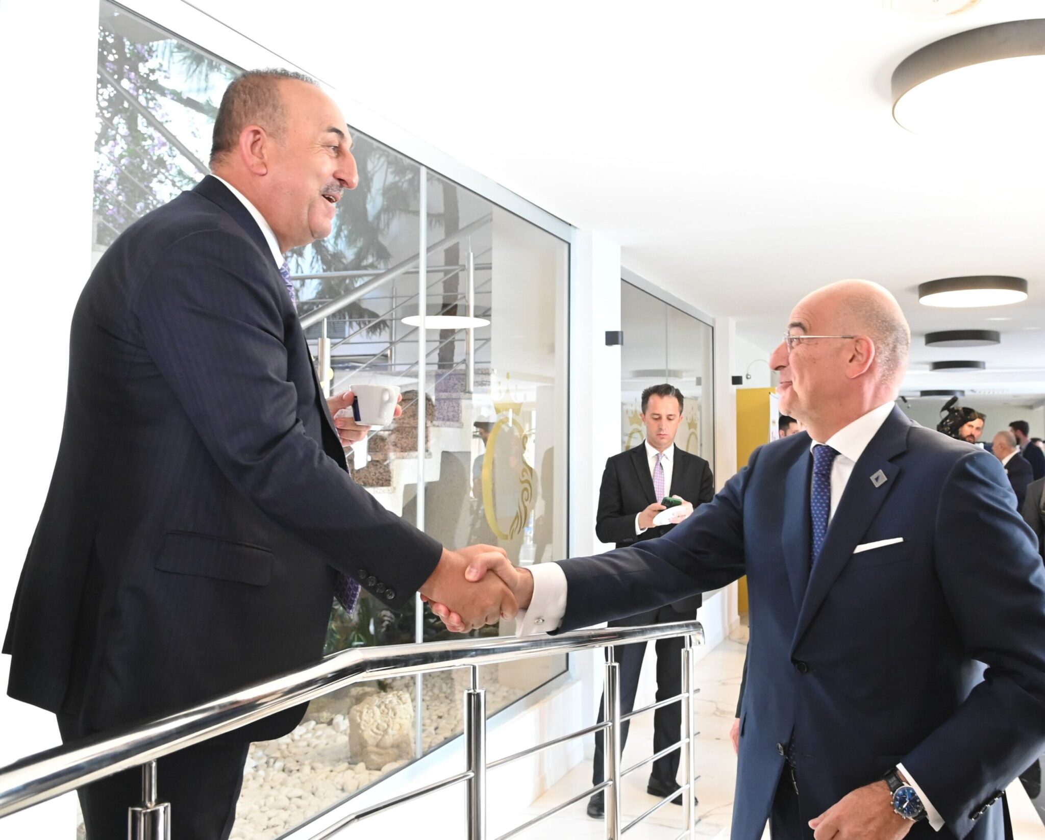 Βόρεια Μακεδονία: Χειραψία και σύντομη συνομιλία  Δένδια-Τσαβούσογλου