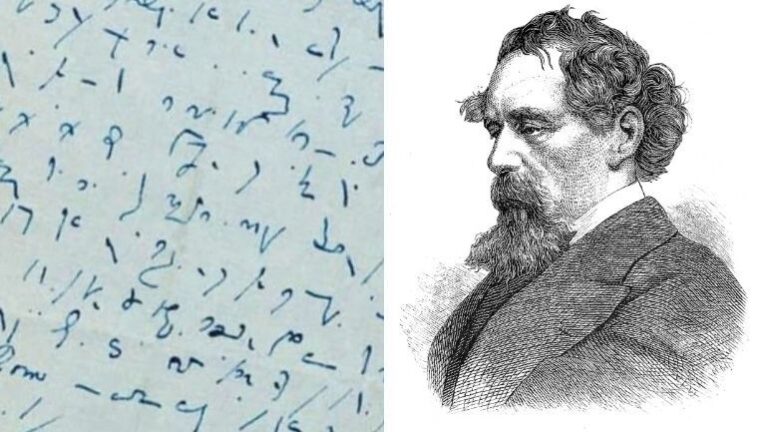 Λάτρης των παζλ και των κωδίκων, ο μεγάλος βικτωριανός συγγραφέας χρησιμοποίησε αυτά τα ιερογλυφικά που του εξοικονομούσαν χρόνο για να κρατάει σημειώσεις και αντίγραφα των επιστολών και των εγγράφων του. Οι ακαδημαϊκοί εξακολουθούν να μοχθούν για να αποκρυπτογραφήσουν δέκα χειρόγραφα στενογραφίας που σώθηκαν.