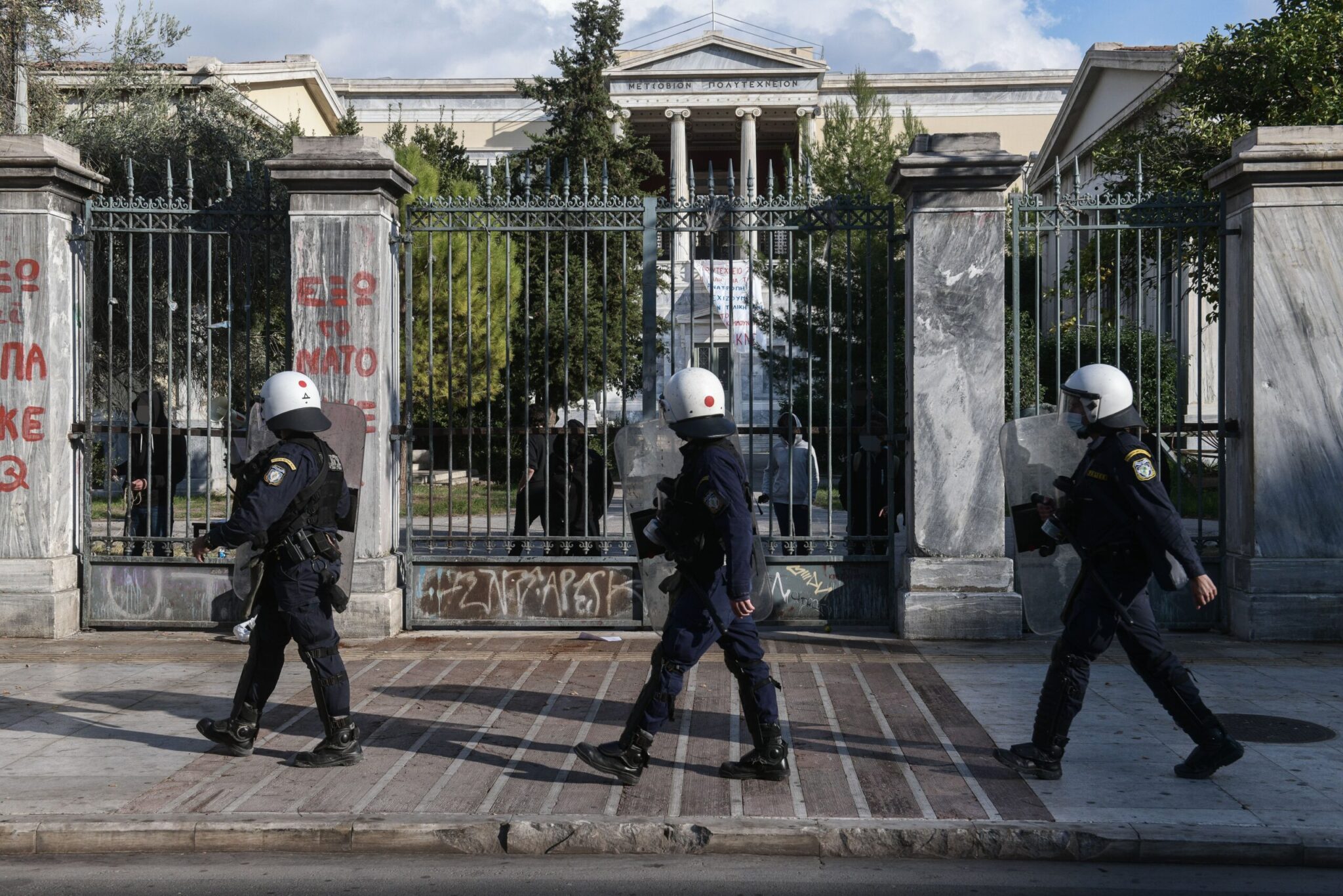 Την ίδια ώρα, ισχυρές αστυνομικές δυνάμεις παραμένουν στην περιοχή των Εξαρχείων, όπου έχουν γίνει καλέσματα για συγκεντρώσεις. Παράλληλα, οι αστυνομικοί θα επιτηρούν το Πολυτεχνείο, προκειμένου να μην εισέλθουν εκ νέου άτομα στο εσωτερικό του.