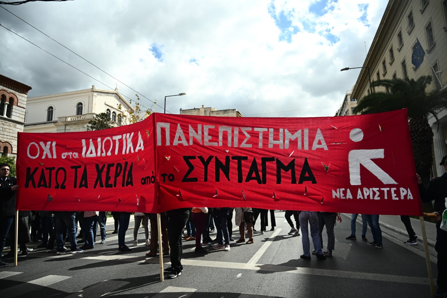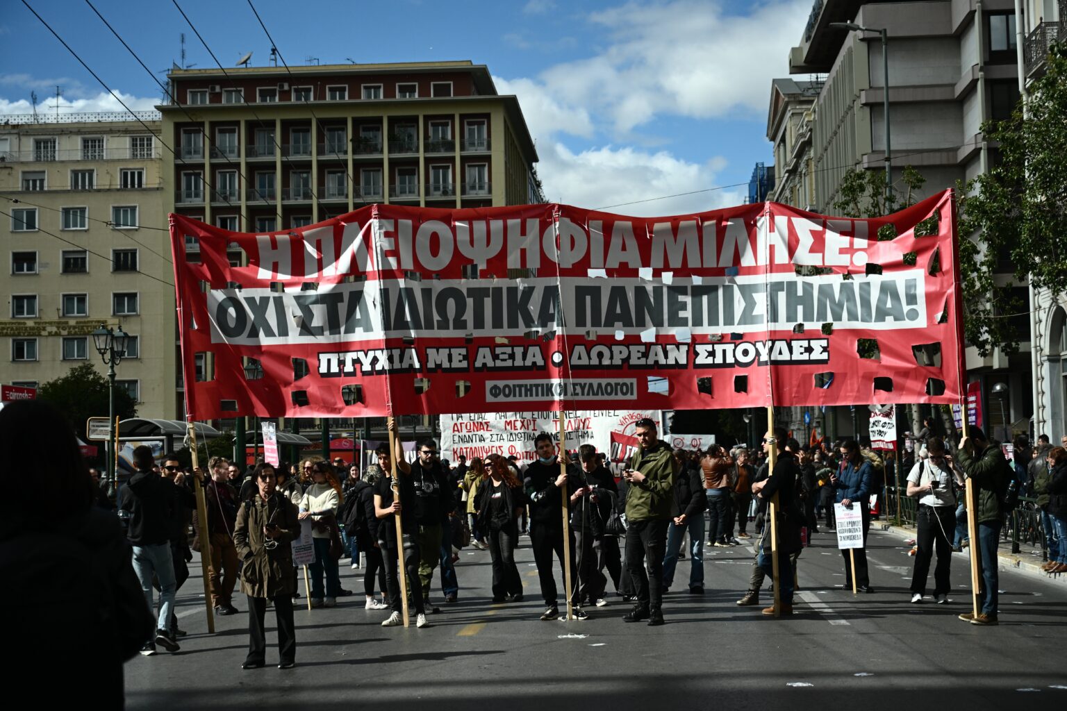 Με κεντρικό σύνθημα «Η πλειοψηφία μίλησε. Όχι στα ιδιωτικά πανεπιστήμια. Πτυχία με αξία. Δωρεάν σπουδές» φοιτητικοί σύλλογοι από όλη την Ελλάδα συγκεντρώθηκαν στα Προπύλαια και έχουν ξεκινήσει πορεία μέχρι τη Βουλή. Στην διαδήλωση συμμετέχουν επίσης σωματεία εκπαιδευτικών, μαθητές και μαθήτριες, εργατικά συνδικάτα και ομοσπονδίες.