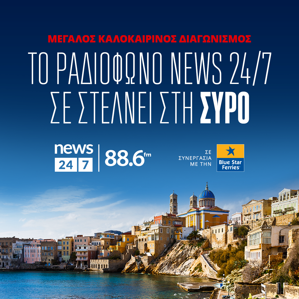Σήμερα, Δευτέρα 24/06 ο News 24/7 στους 88.6 σε στέλνει στη Σύρο!
