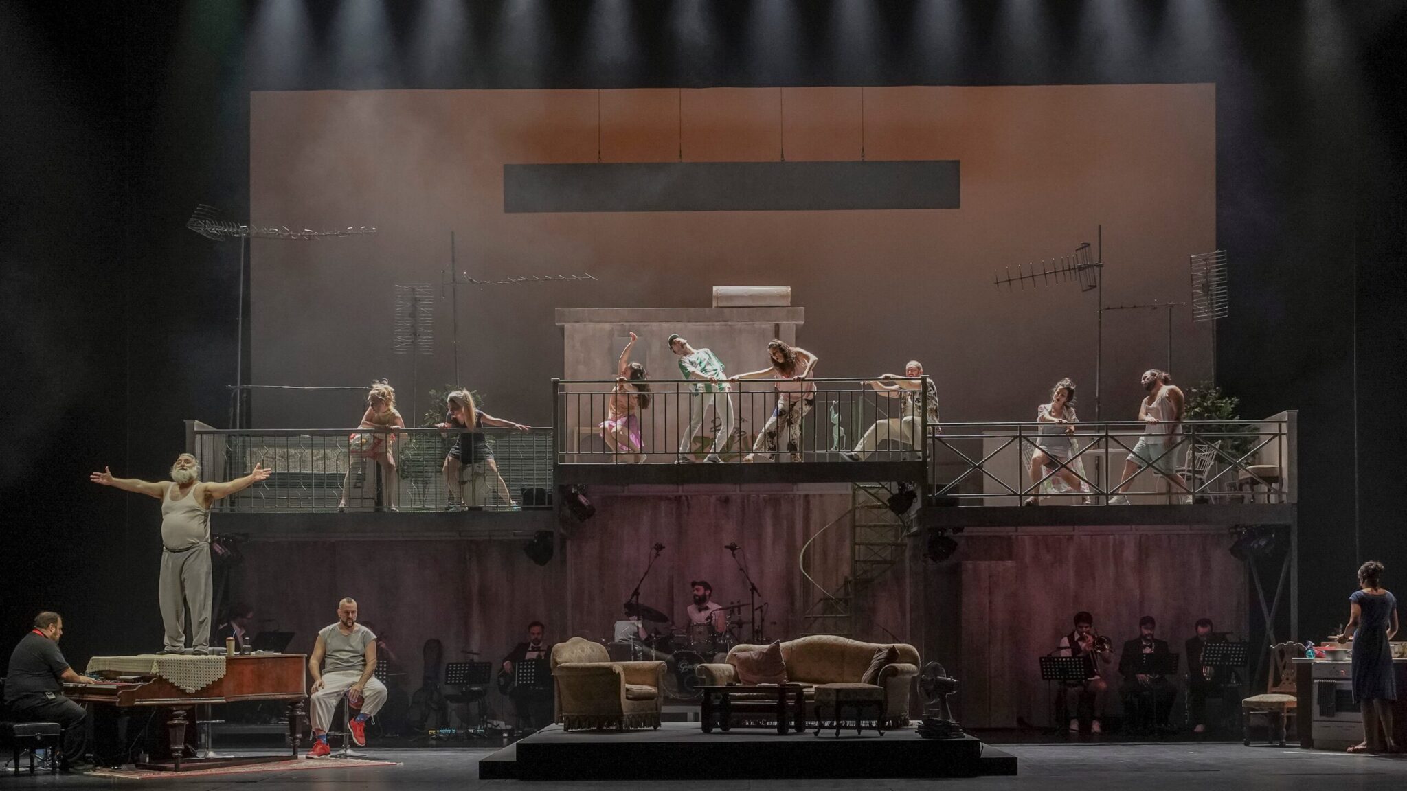 Ένα μικροαστικό διαμέρισμα που στενάζει, ένα a/c που δεν δουλεύει. Μια τηλεόραση που παίζει αδιάκοπα. Τσιγάρα και φραπές. Το λαϊκό άσμα ενός πατέρα καφετζή, η ταραγμένη φωνή μιας μάνας. Το ρυθμικό παραλήρημα ενός σεξιστή γιου, η μεγαλοπρεπής άρια του κουνιάδου. H σκληρή γλώσσα και τα φλέγοντα ερωτήματα αναδιατυπώνονται με μουσικούς όρους: «Τι θα κάνεις με τη Λίντα, Βαγγέλη;»