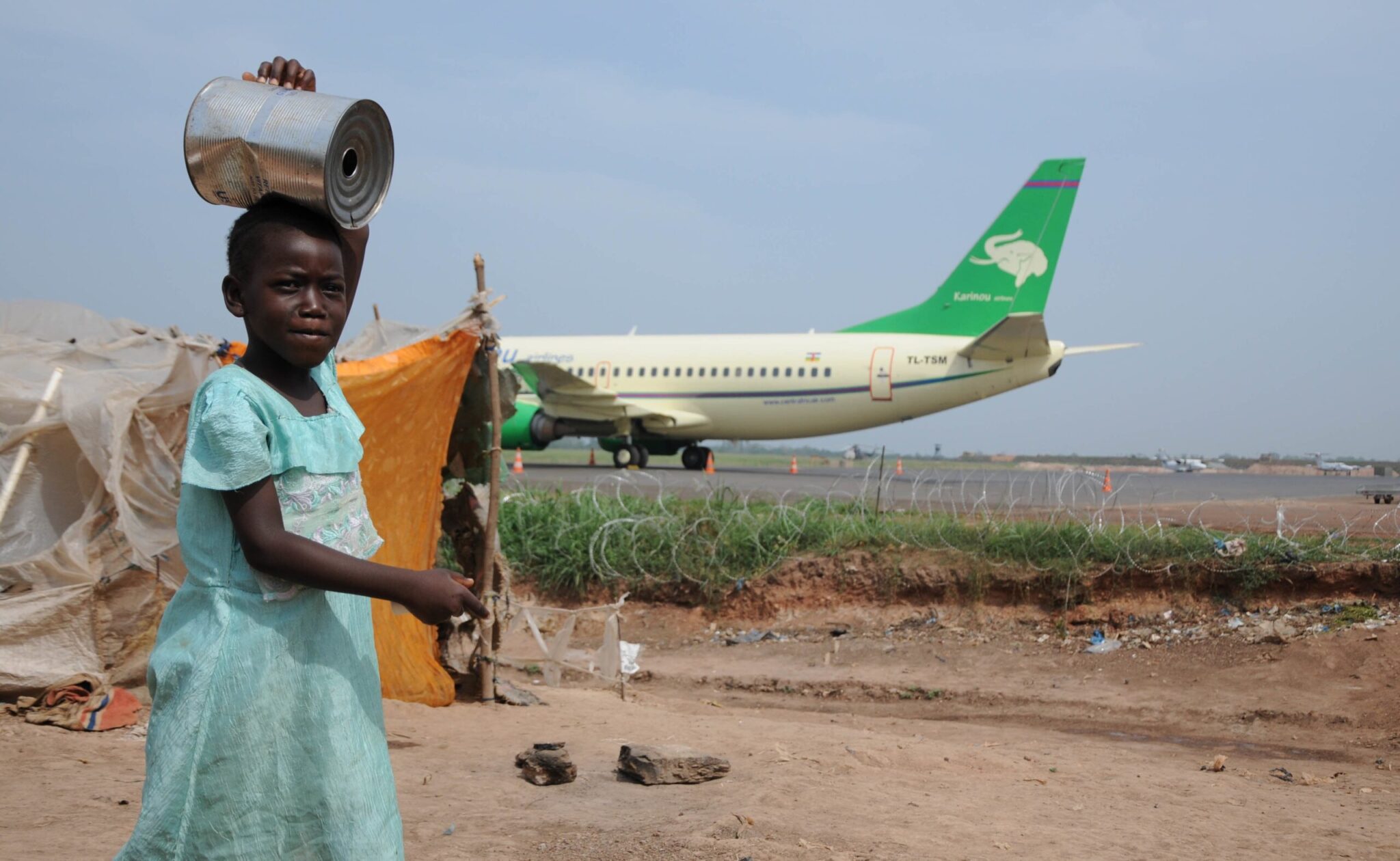 Το αεροδρόμιο της πρωτεύουσας της Κεντρικής Αφρικανικής Δημοκρατίας, το Μπανγκί, είναι μια υποτυπώδης λωρίδα ασφάλτου συν μια αίθουσα αναμονής, όμοια με σταθμό του ΚΤΕΛ σε επαρχιακή κωμόπολη της Ελλάδας. Αν έλειπαν οι στρατιωτικές δυνάμεις της Γαλλίας και του ΟΗΕ – η πρώτη εικόνα που αντικρίζεις μόλις βγάλεις το κεφάλι σου από την άτρακτο – πιθανότατα να ήταν ακόμα πιο στοιχειώδες· ίσως ένας διάδρομος με καλά πατημένα σκύρα και αυτό είναι όλο, όπως συμβαίνει άλλωστε στα υπόλοιπα αεροδρόμια της χώρας.
